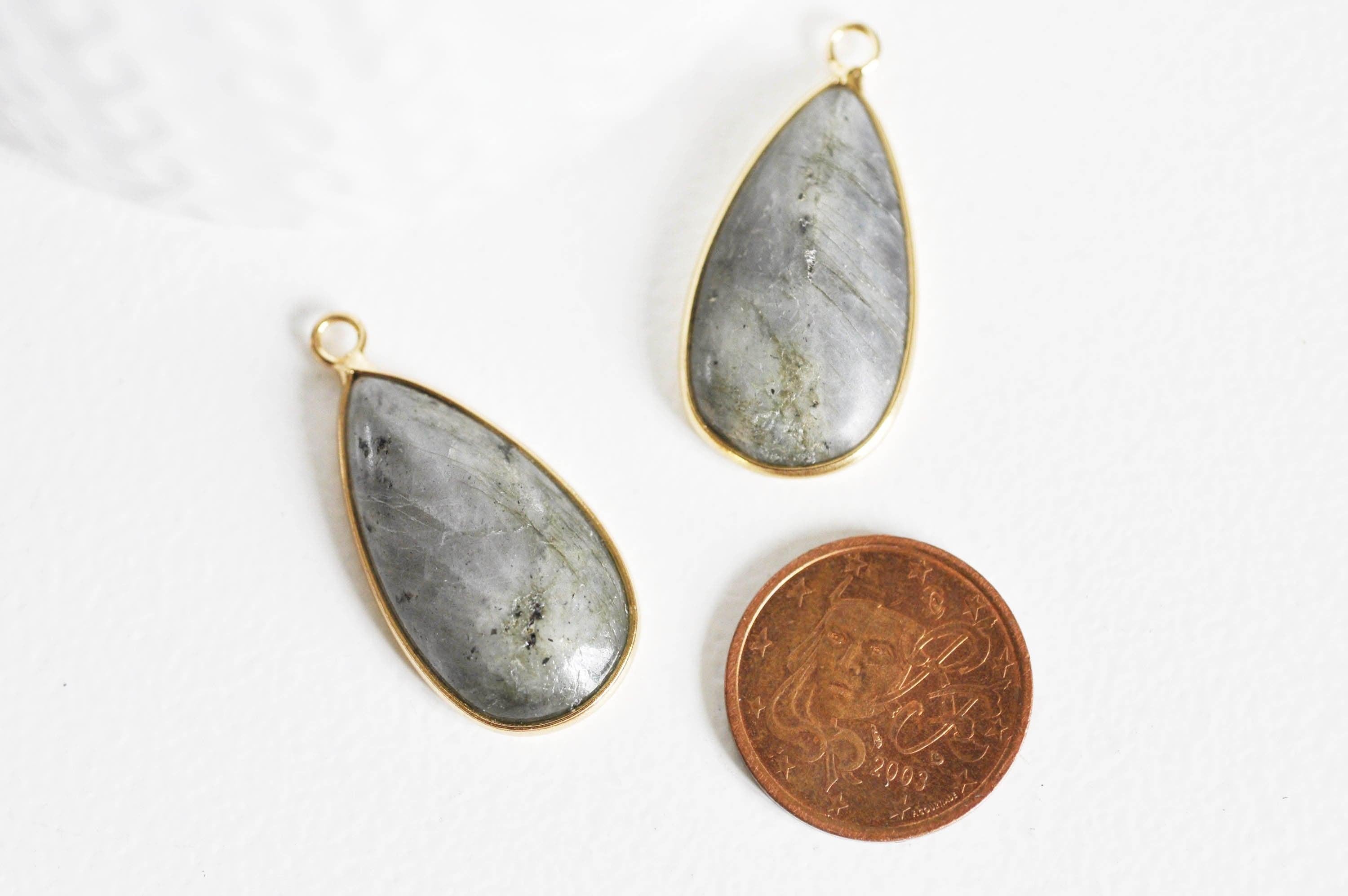 Colgante gota de labradorita natural 33mm, Colgante de creación de joyería de piedra, x1, G1470