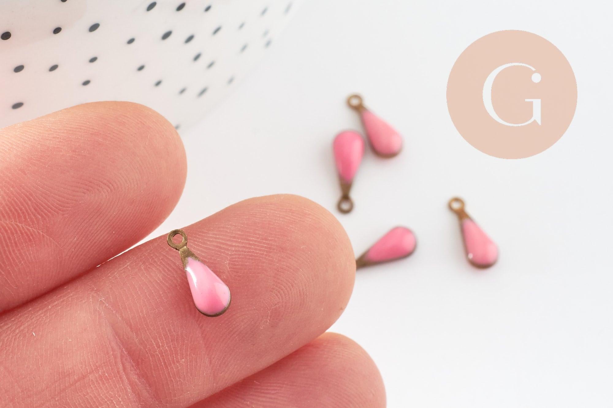 Colgante de gota de latón crudo con esmalte rosa, suministros creativos, latón bañado en oro, colgante de gota, creación de joyas, 11 mm, juego de 10