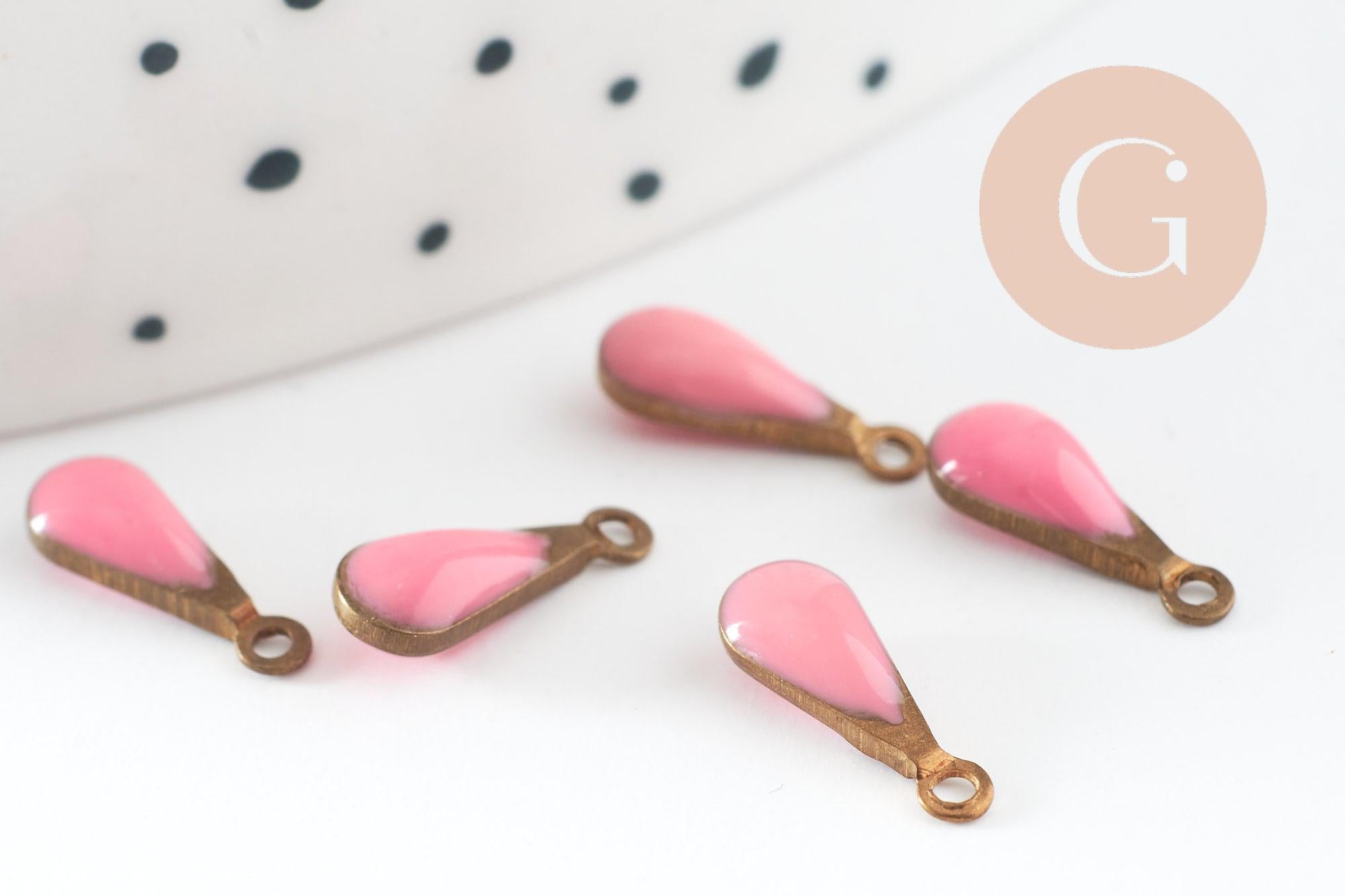 Colgante de gota de latón crudo con esmalte rosa, suministros creativos, latón dorado, colgante de gota, 11 mm, x10 G2420