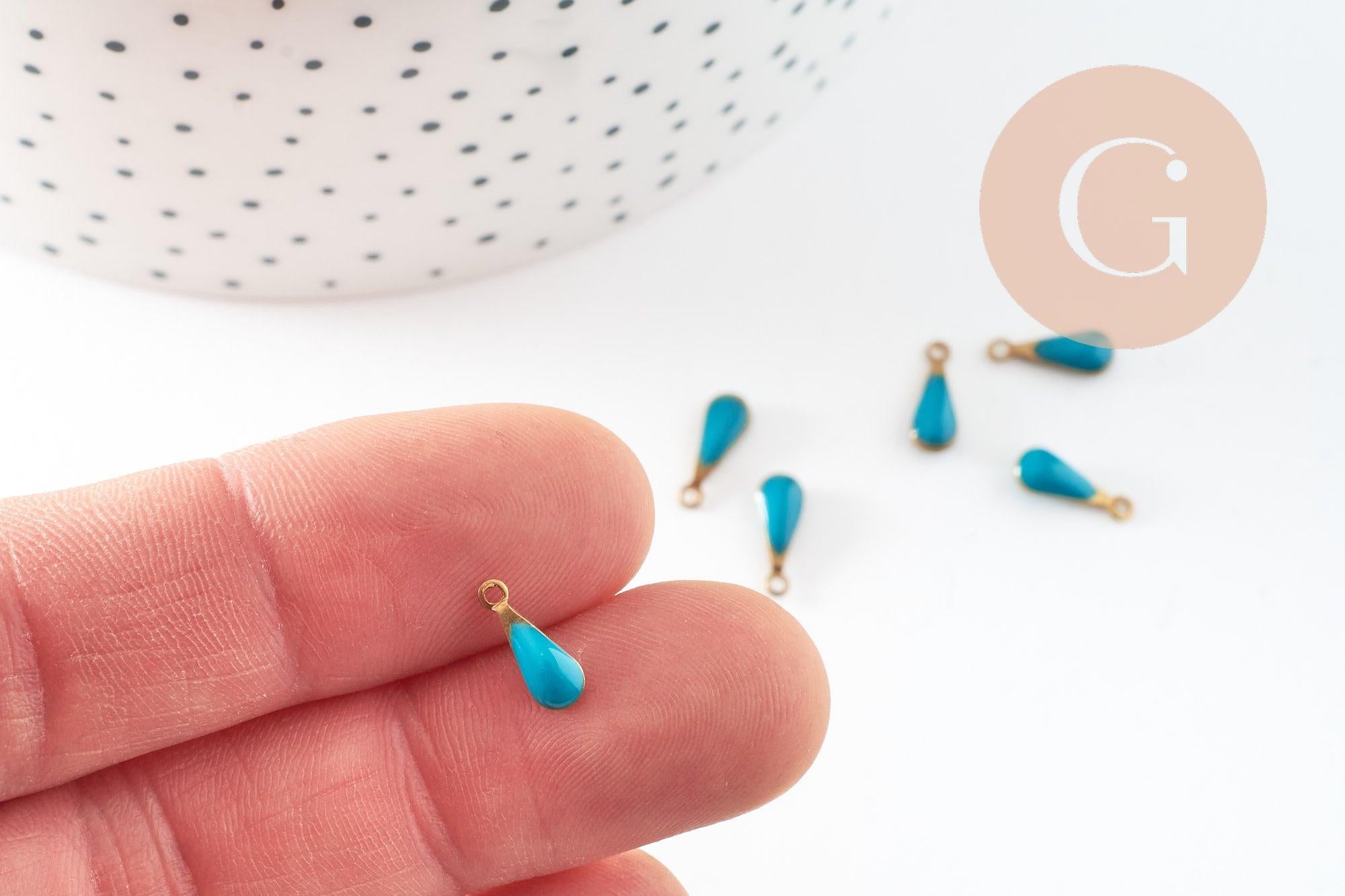 Conjunto de 10 colgantes de latón en forma de gota decorados con esmalte azul turquesa.