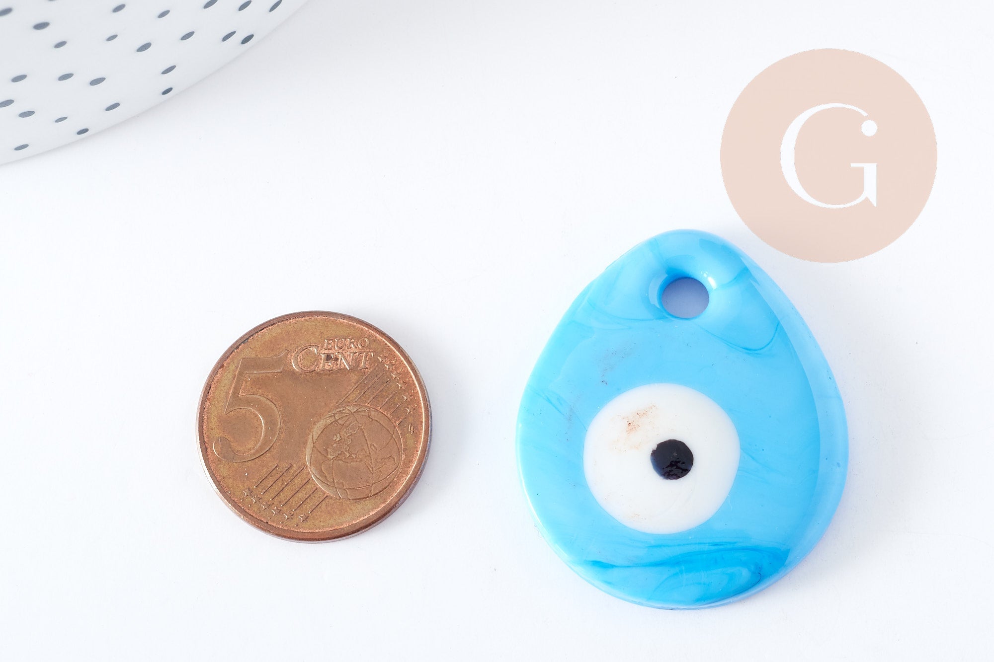 Colgante Evil Eye drop de vidrio azul cielo 34x30mm, colgante de vidrio artesanal de la suerte para la creación de joyas, x1 G8852