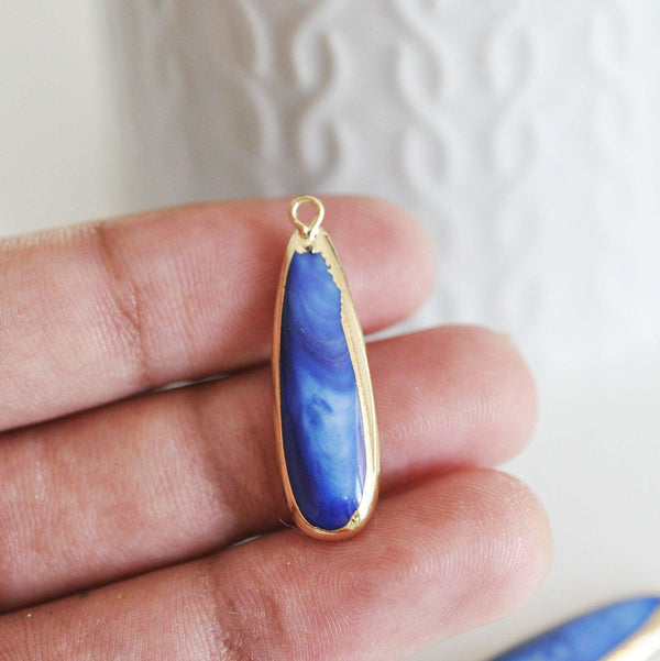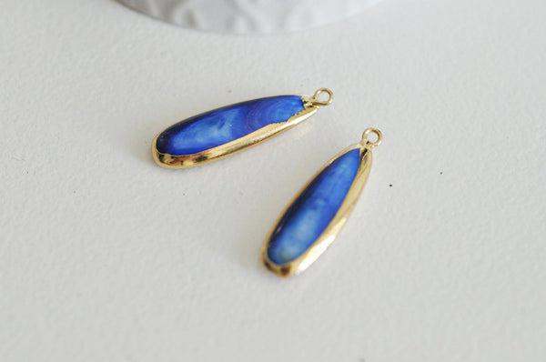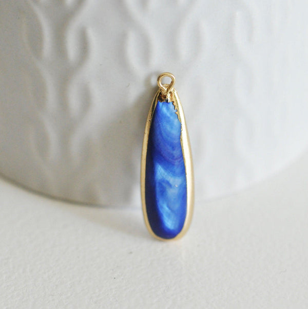 Colgante gota de nácar natural azul dorado, nácar azul, joyería de nácar, concha azul, creación de joyas, 33 mm, cada uno