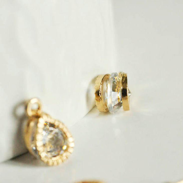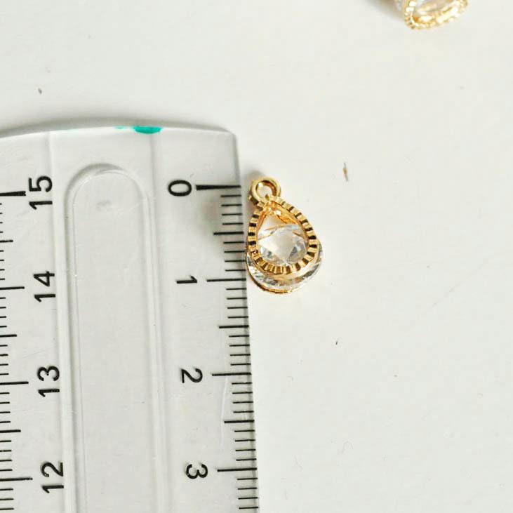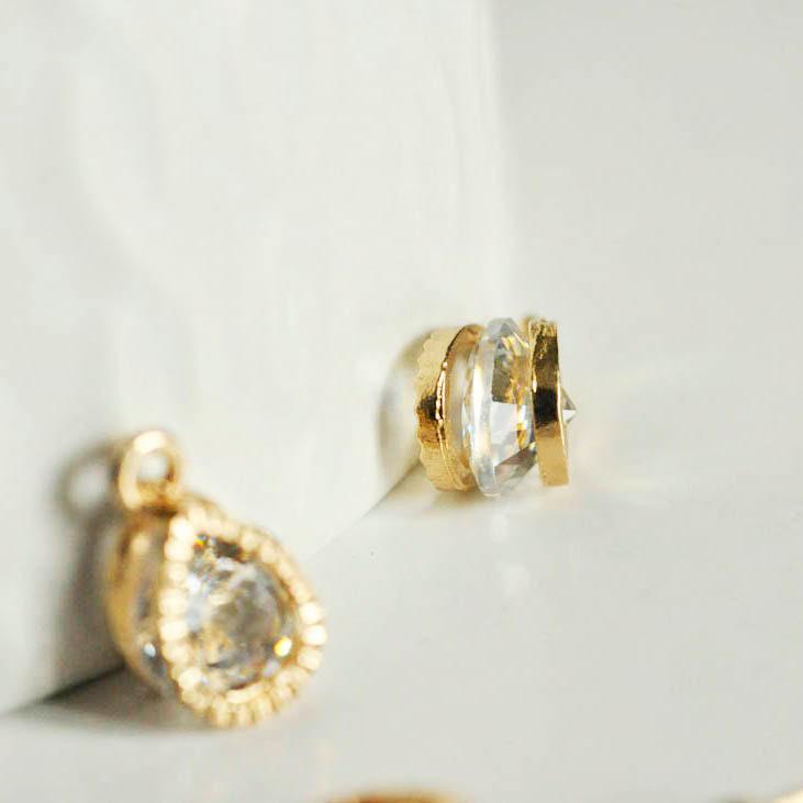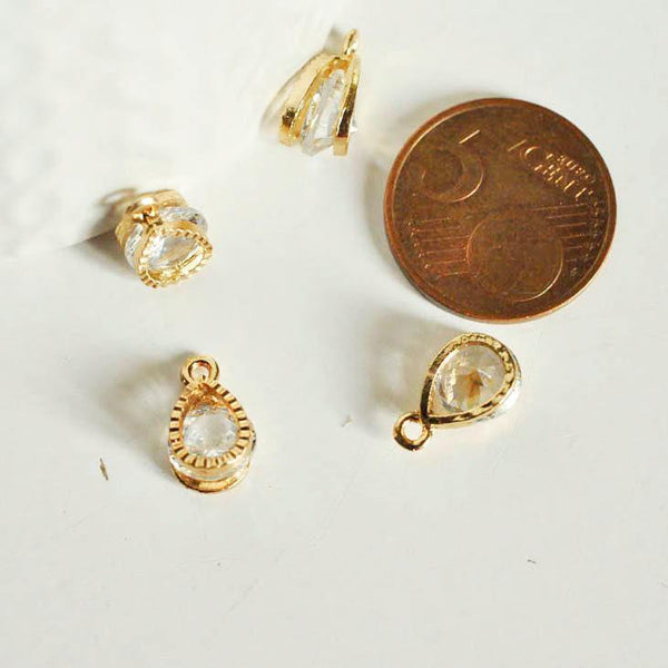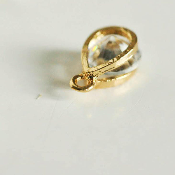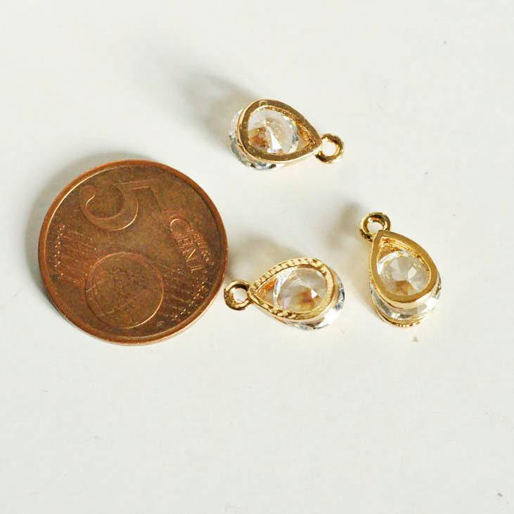 Colgante gota de zamac cristal circonita dorada 13mm, colgante dorado, colgante de cristal, joya dorada, creación de joyas, X4 (G6856)