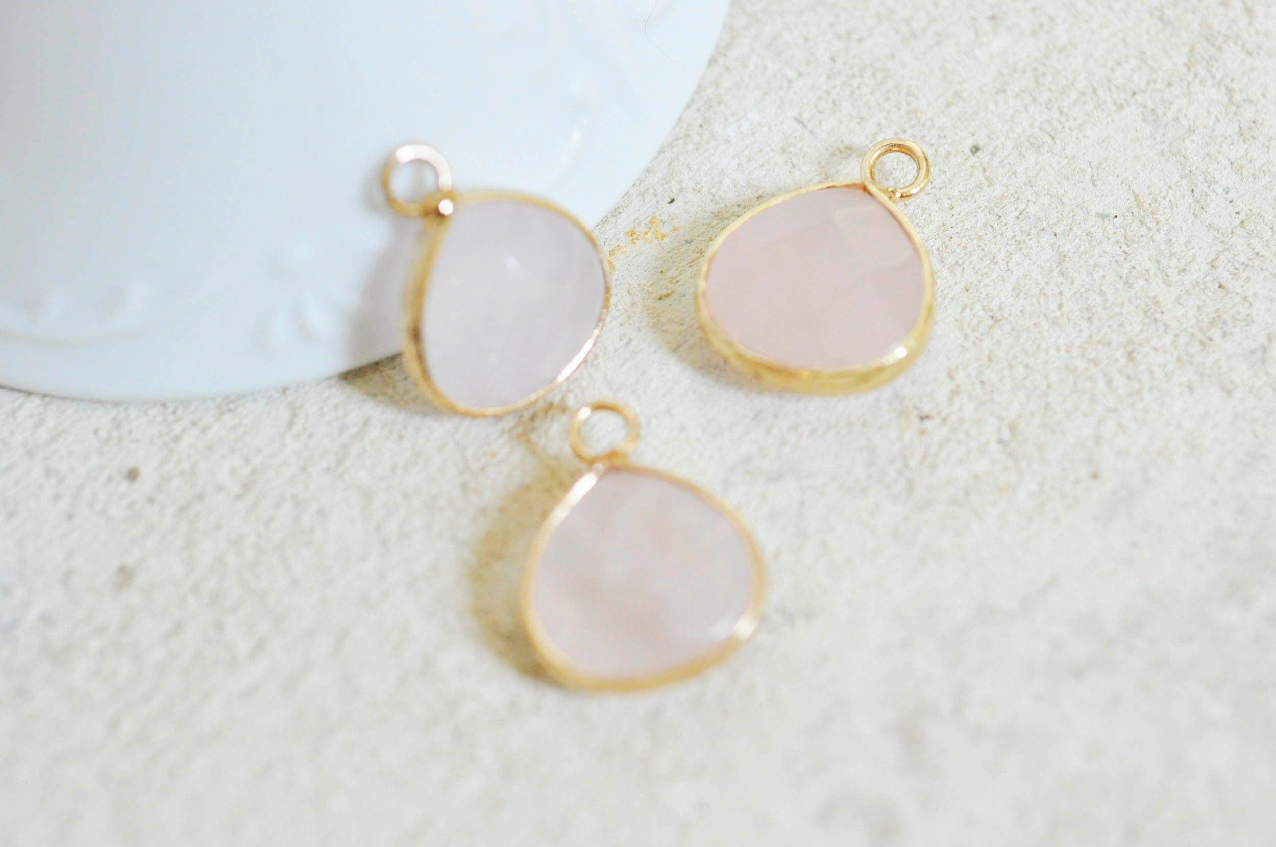 Colgante de gota de cuarzo rosa, suministros para manualidades, colgante de joyería, colgante de cuarzo, colgante de piedra, cuarzo natural, cuarzo rosa, 23 mm