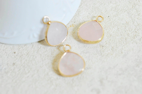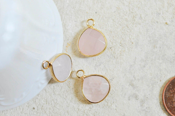 Déjate seducir por este pequeño colgante de cuarzo rosa con su soporte dorado en forma de gota.