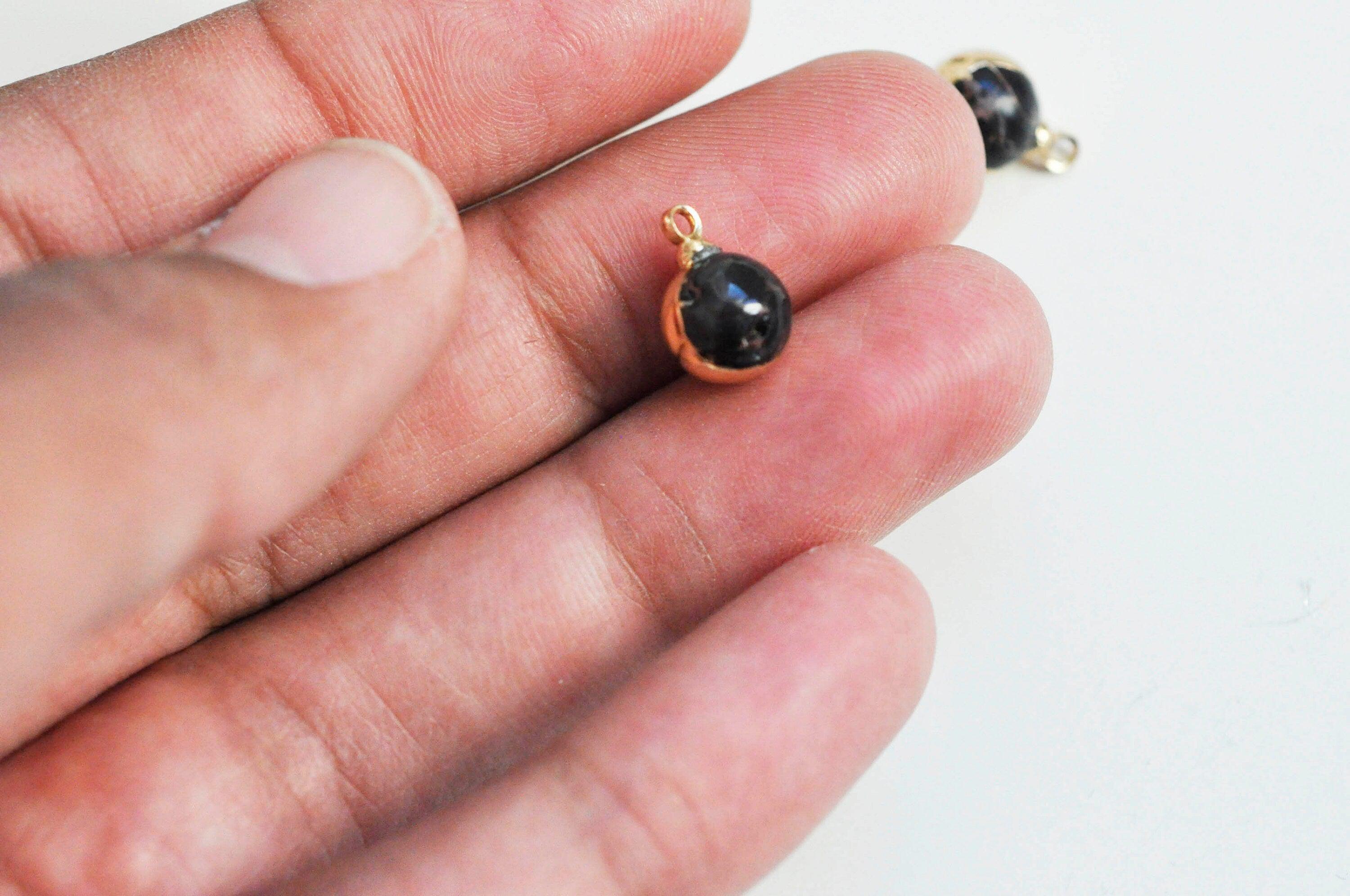 Colgante de gota de regalita negra facetada, joyería de piedra, colgante de piedra de regalita natural, 12 mm, x 2, G3358