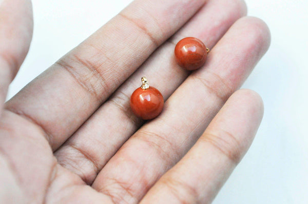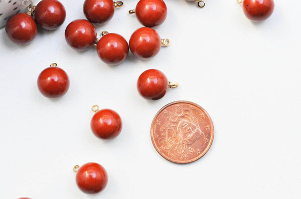 Colgante de gota redonda de jaspe rojo natural, soporte de oro, creación de joyas con piedra natural, colgante de piedra natural, 14 mm, unidad