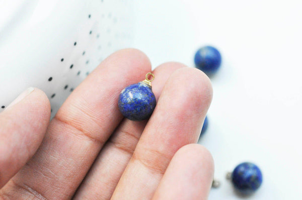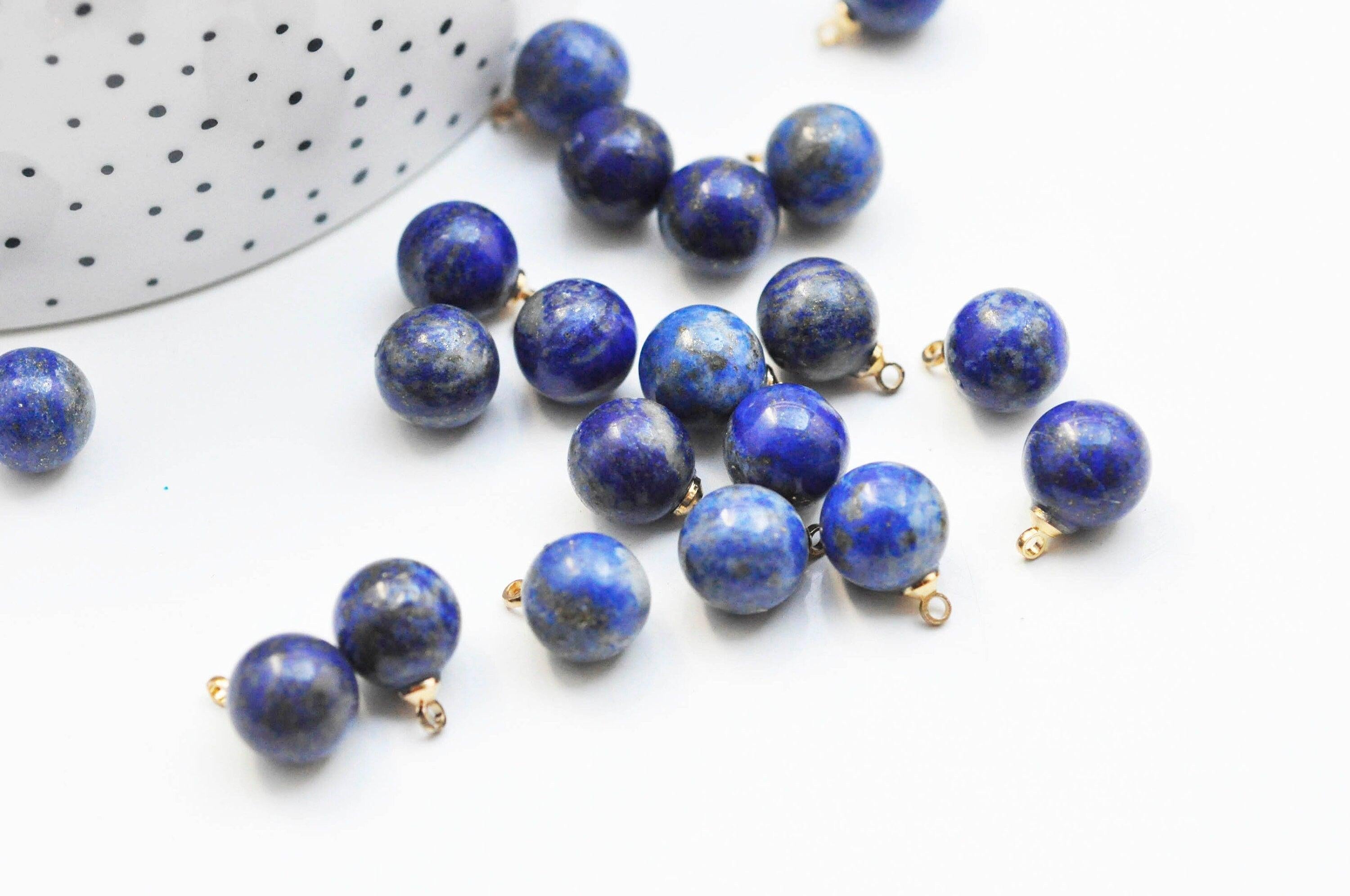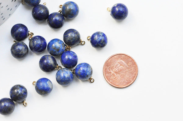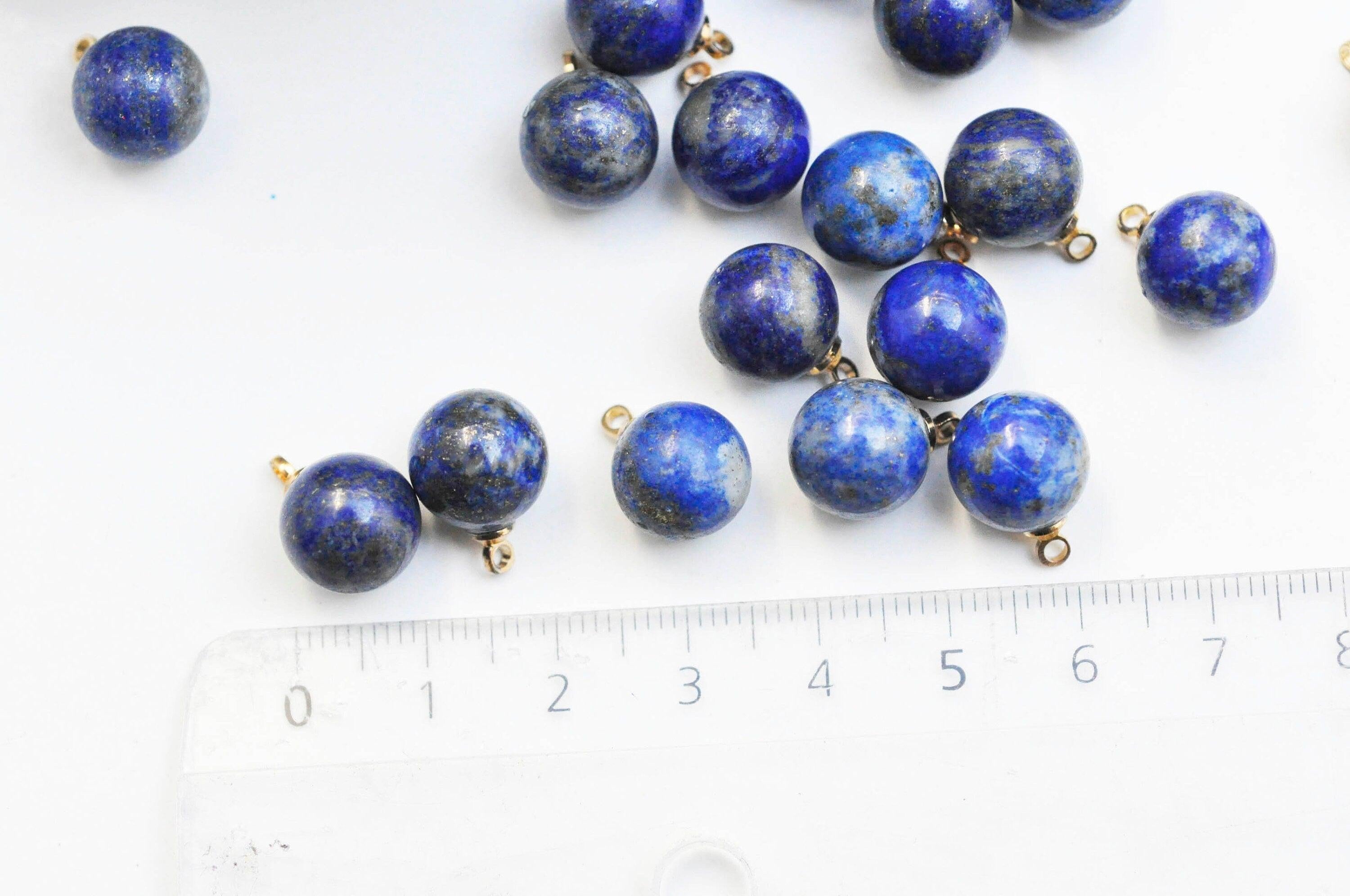 Colgante gota de lapislázuli redondo, soporte dorado, creación de joyas con piedra natural, colgante de piedra natural, 14 mm, unidad