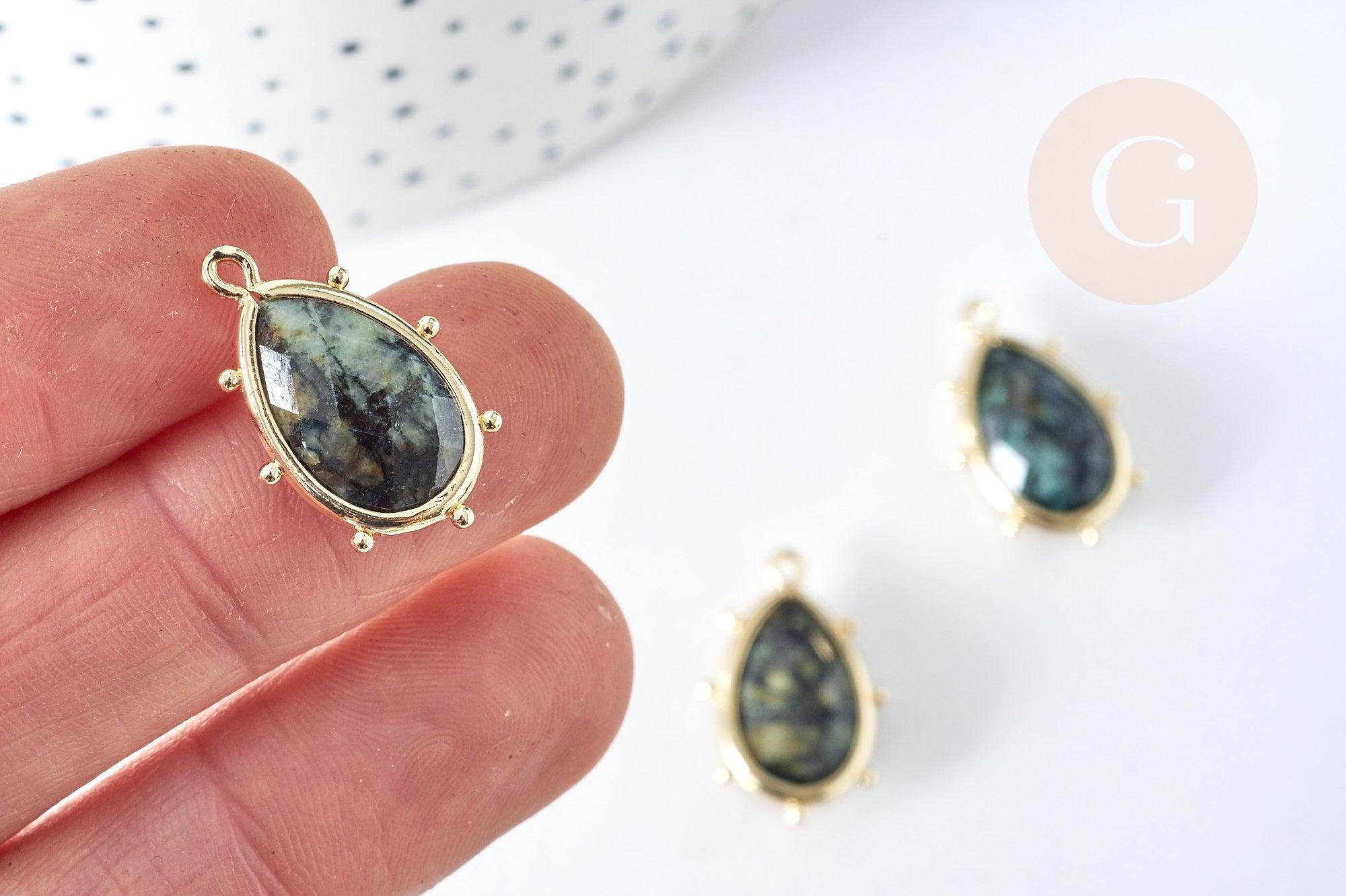 Colgante de gota de turquesa africana natural de latón dorado 22,5 mm, colgante de joyería de piedra natural, x1, G8366