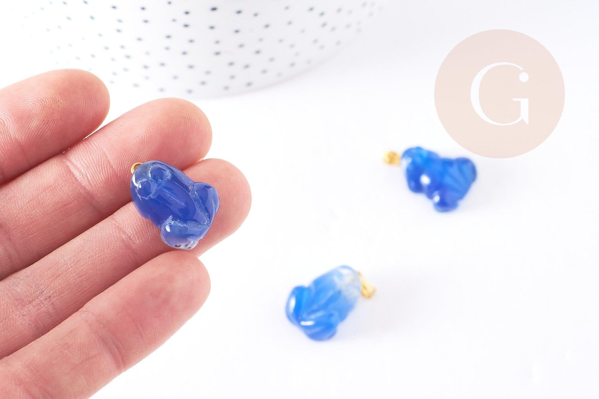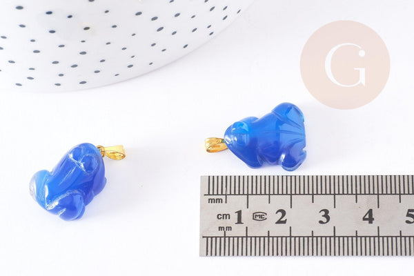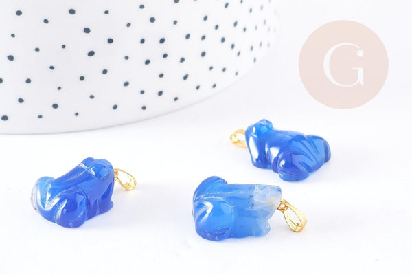 Colgante de rana de ágata azul con soporte dorado, colgante de piedra de ágata azul natural, creación de joyería de piedra natural, 20-22mm, x1, G3987