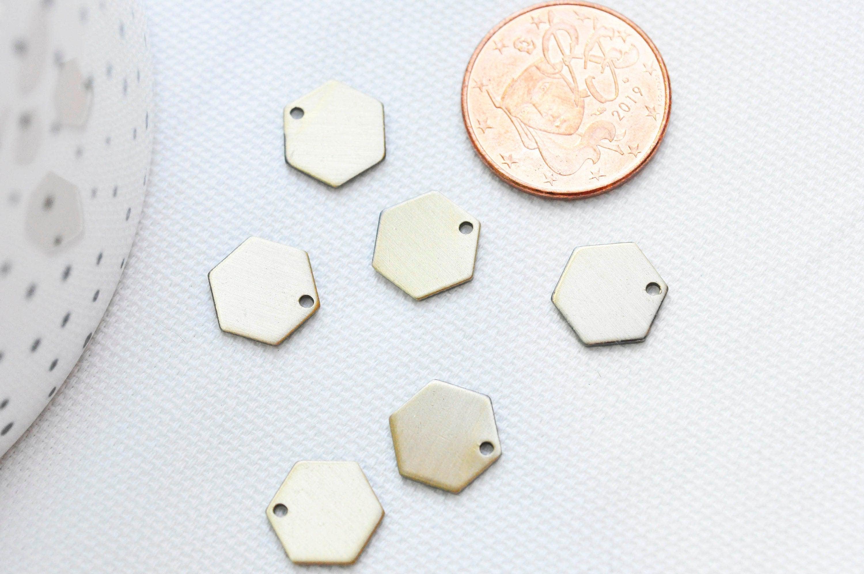 Para tus joyas de tendencia geométrica, aquí tienes unos magníficos colgantes con forma de hexágono en latón bañado en oro que podrás adornar con una piedra o perlas. También puedes grabarlos o decorarlos utilizando punzones.
