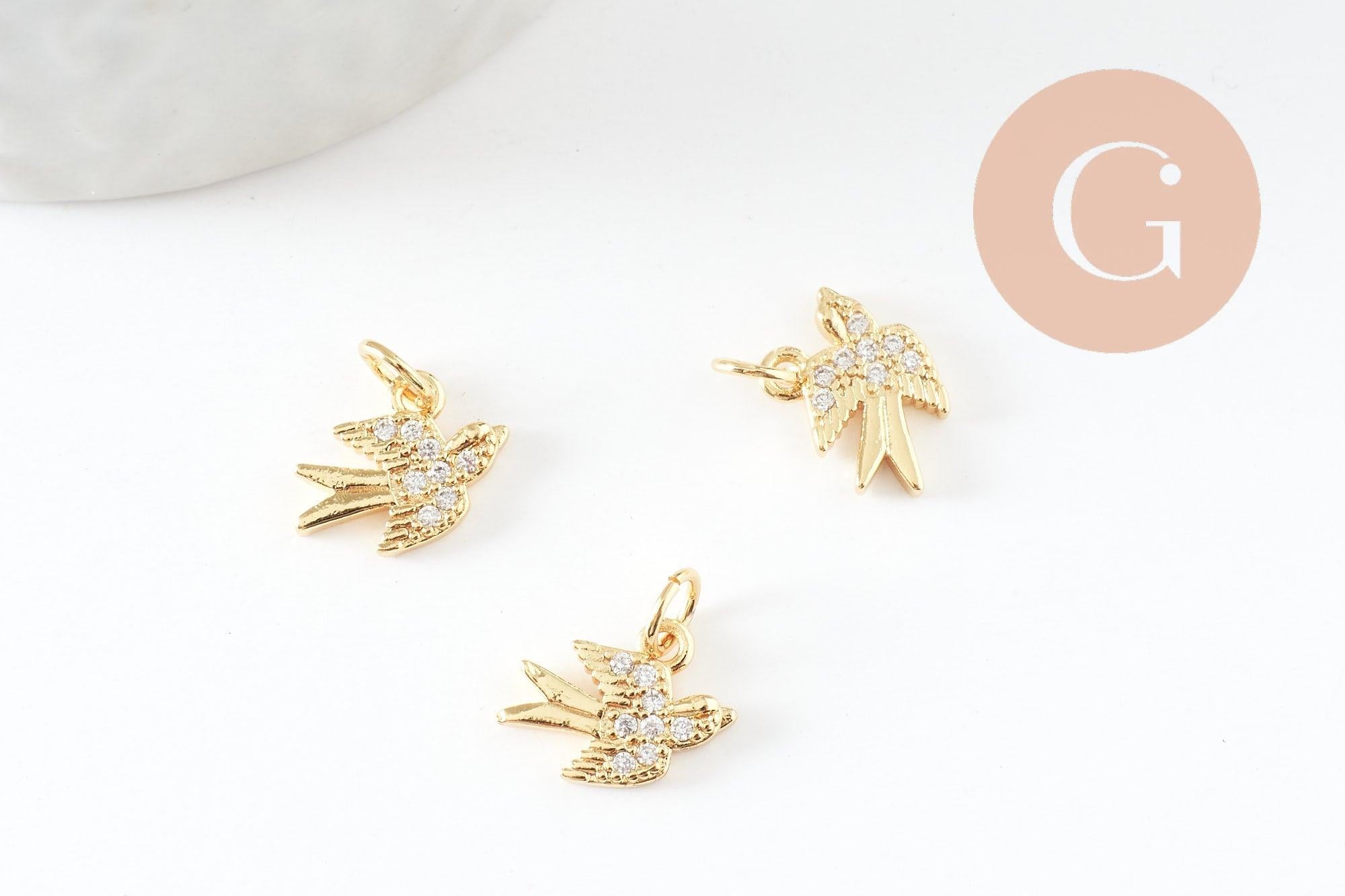 Pendentif Hirondelle laiton doré zirconias 12mm, x1 G9713