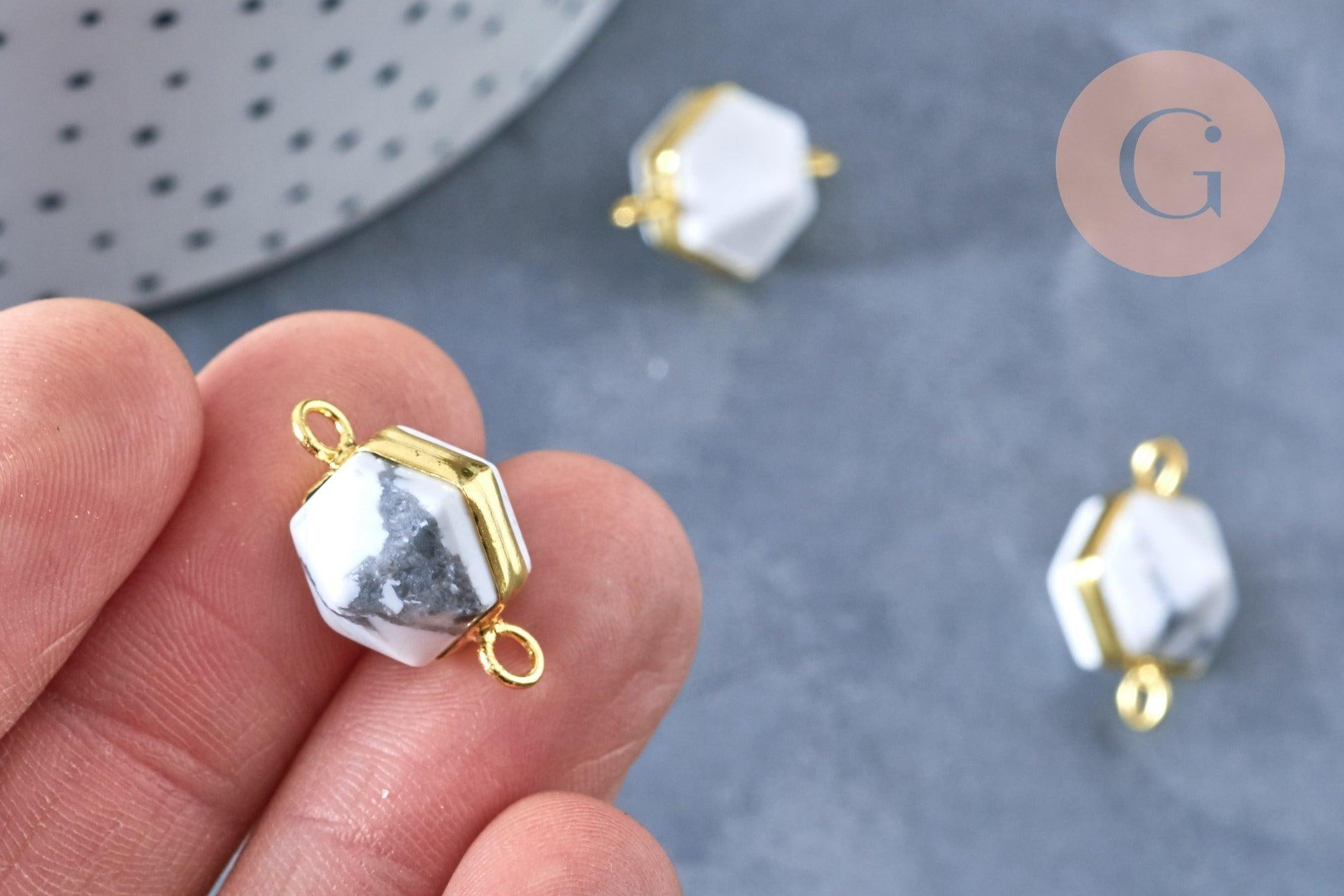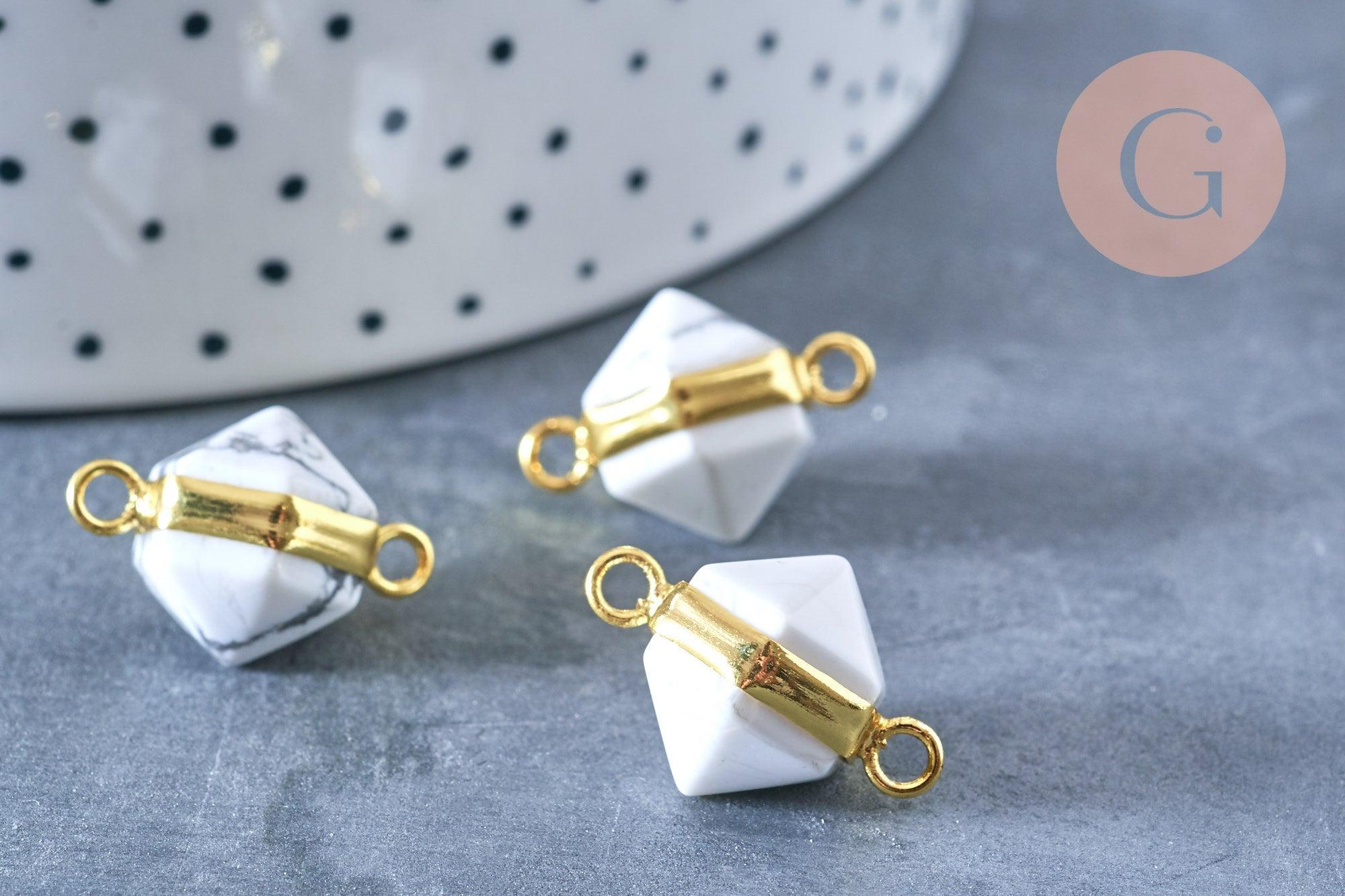 Adopte este colgante de howlita natural con su soporte dorado para sus creaciones de collares y collares DIY.