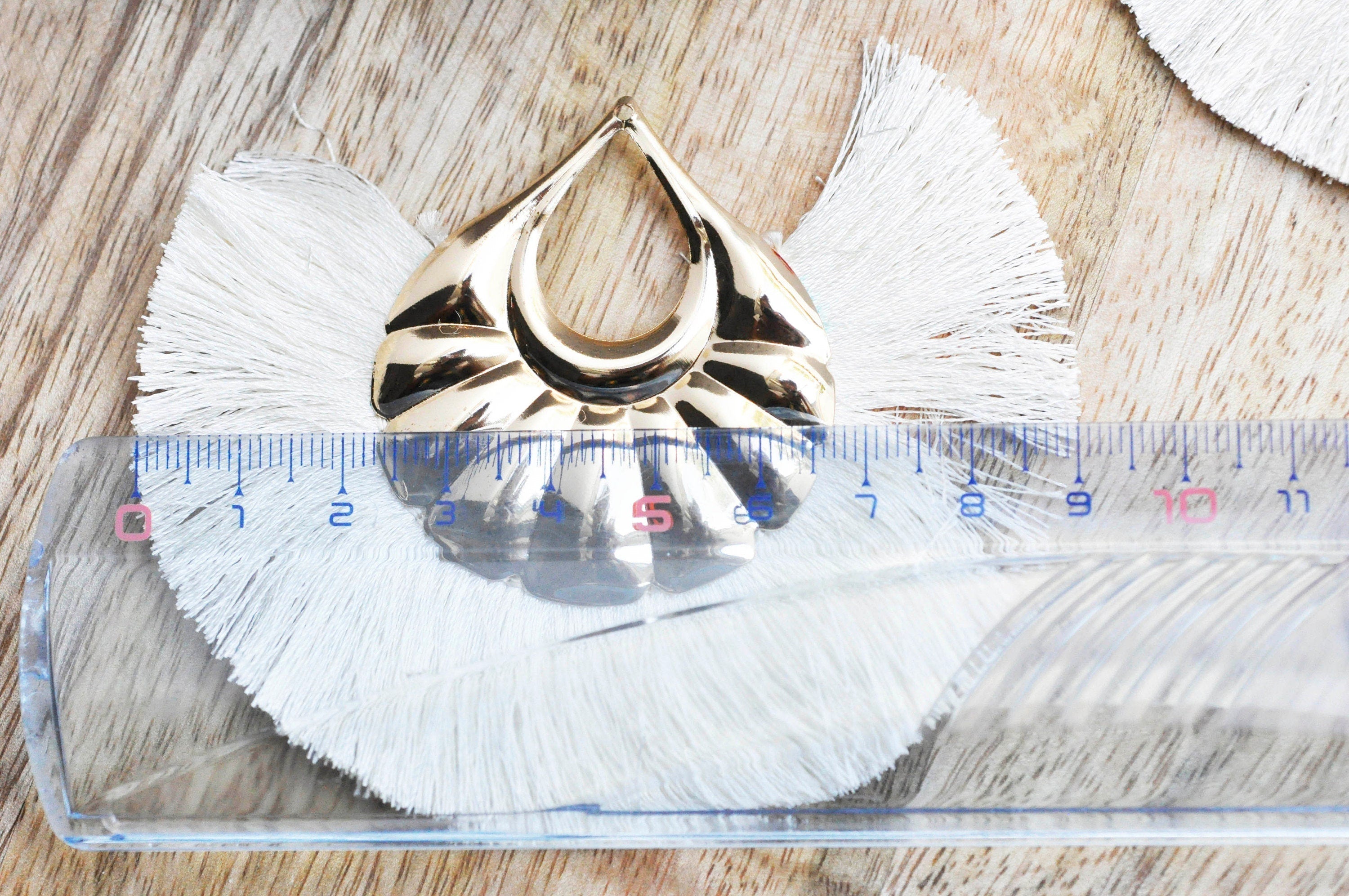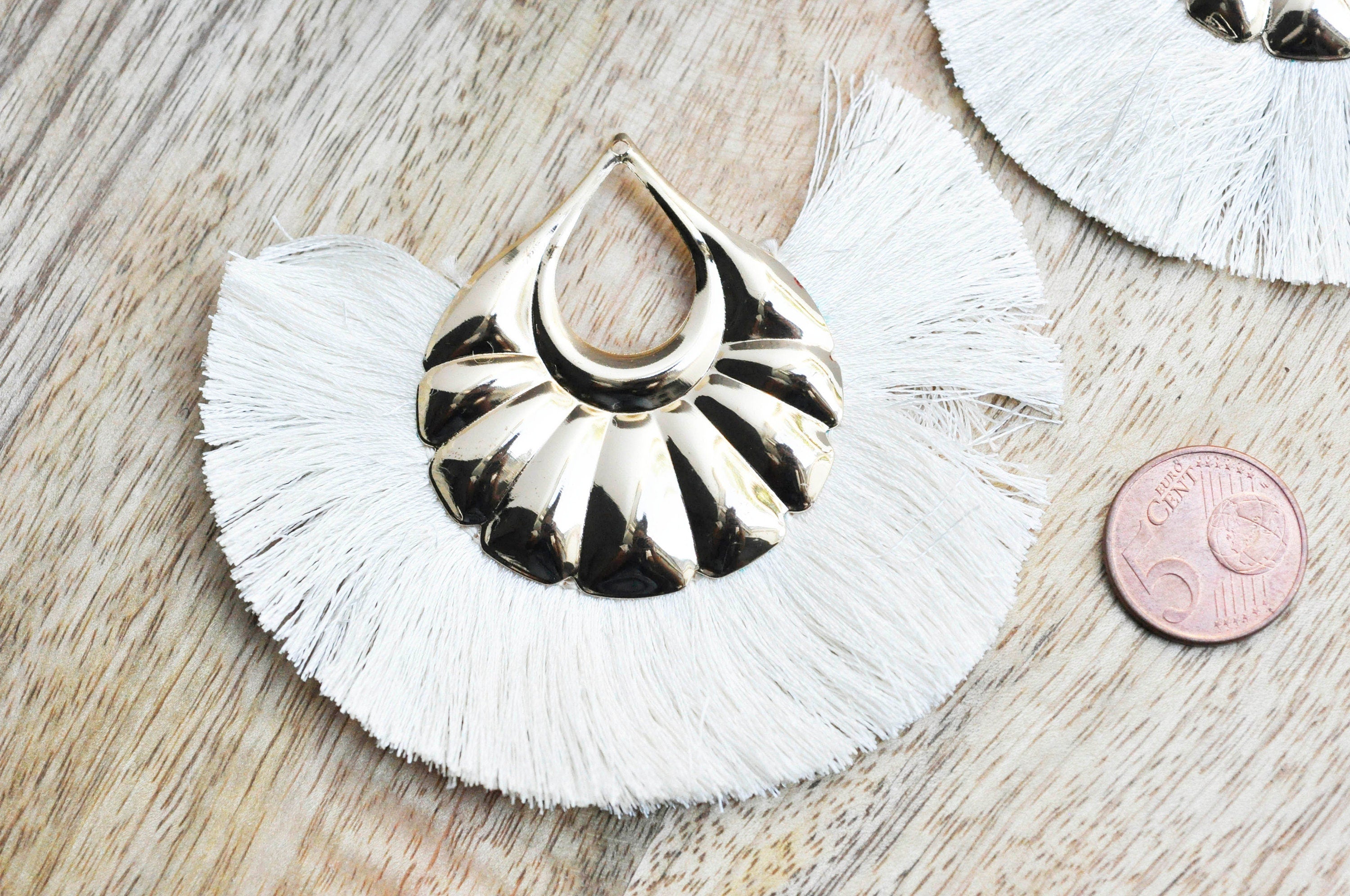 EP -Colgante de pompón grande sobre alambre blanco crudo con soporte dorado, colgante de alambre sobre soporte dorado, 85-92 mm, x 2, G4537