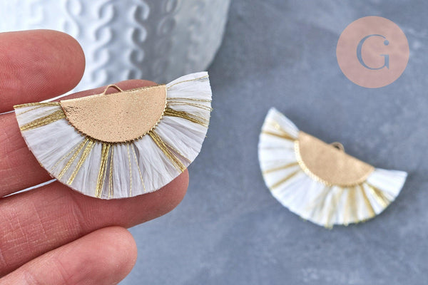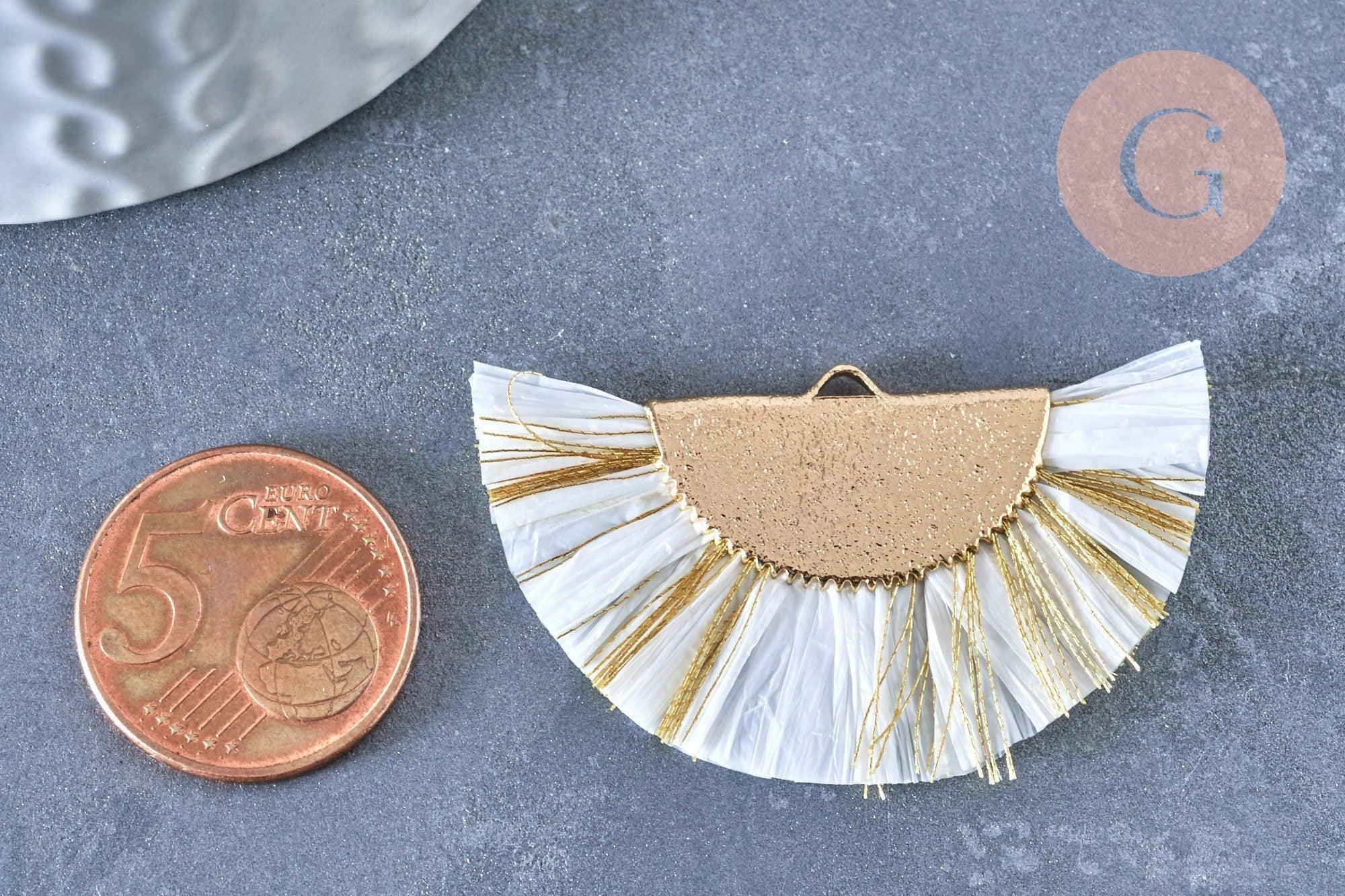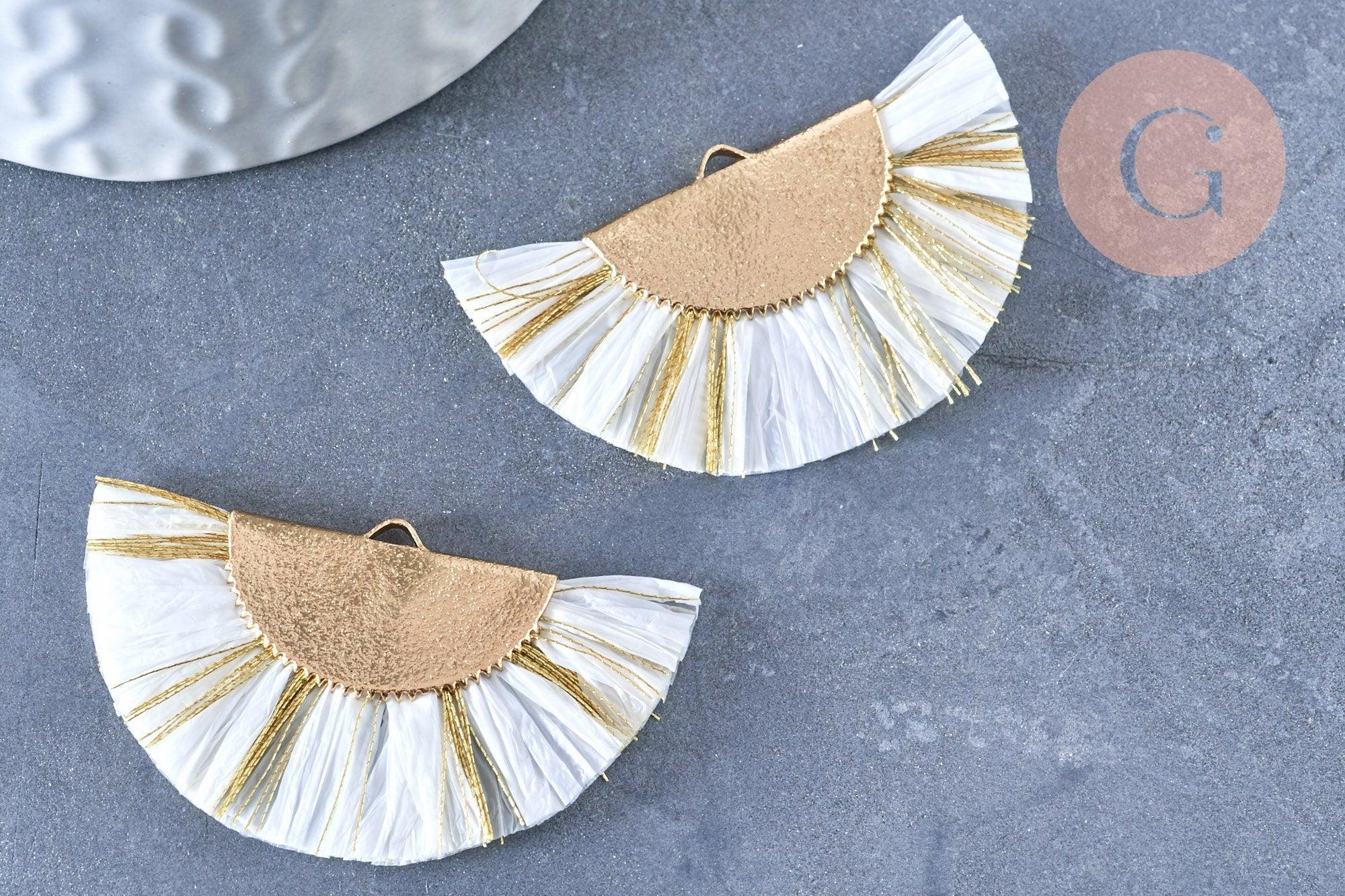 Colgante grande con borla, alambre blanco y dorado, 14 mm, colgante para crear pendientes XXL, x2 (G4136)