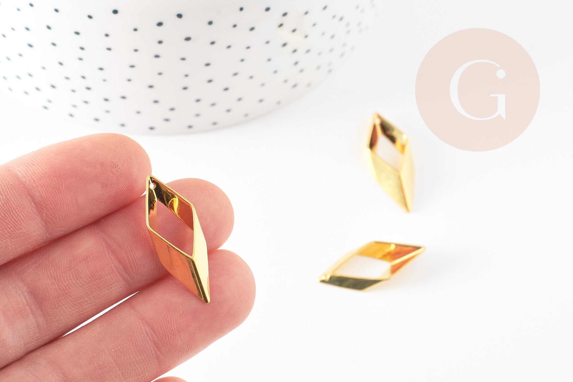 Colgante de diamantes de latón dorado 27 mm, dije geométrico sin níquel, cuenta geométrica, x5 G6230