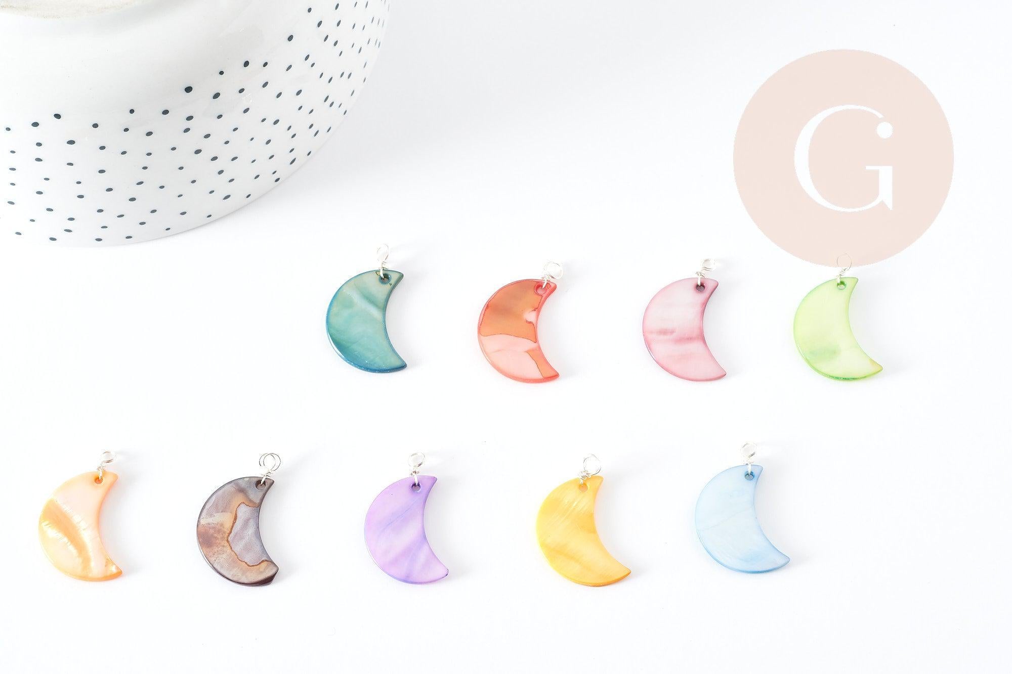 Colgante luna en nácar multicolor, soporte cobre plateado 28.5mm, colgante luna concha joyería DIY x1 G9155