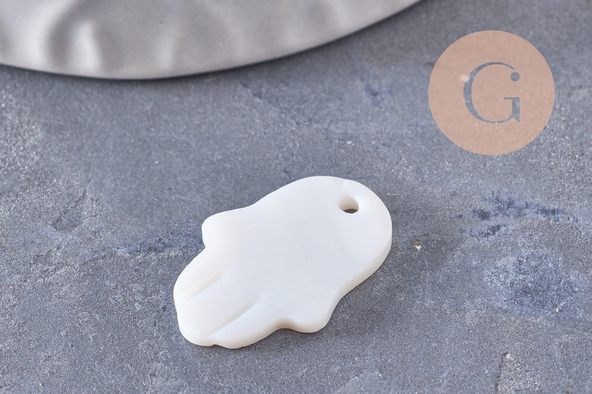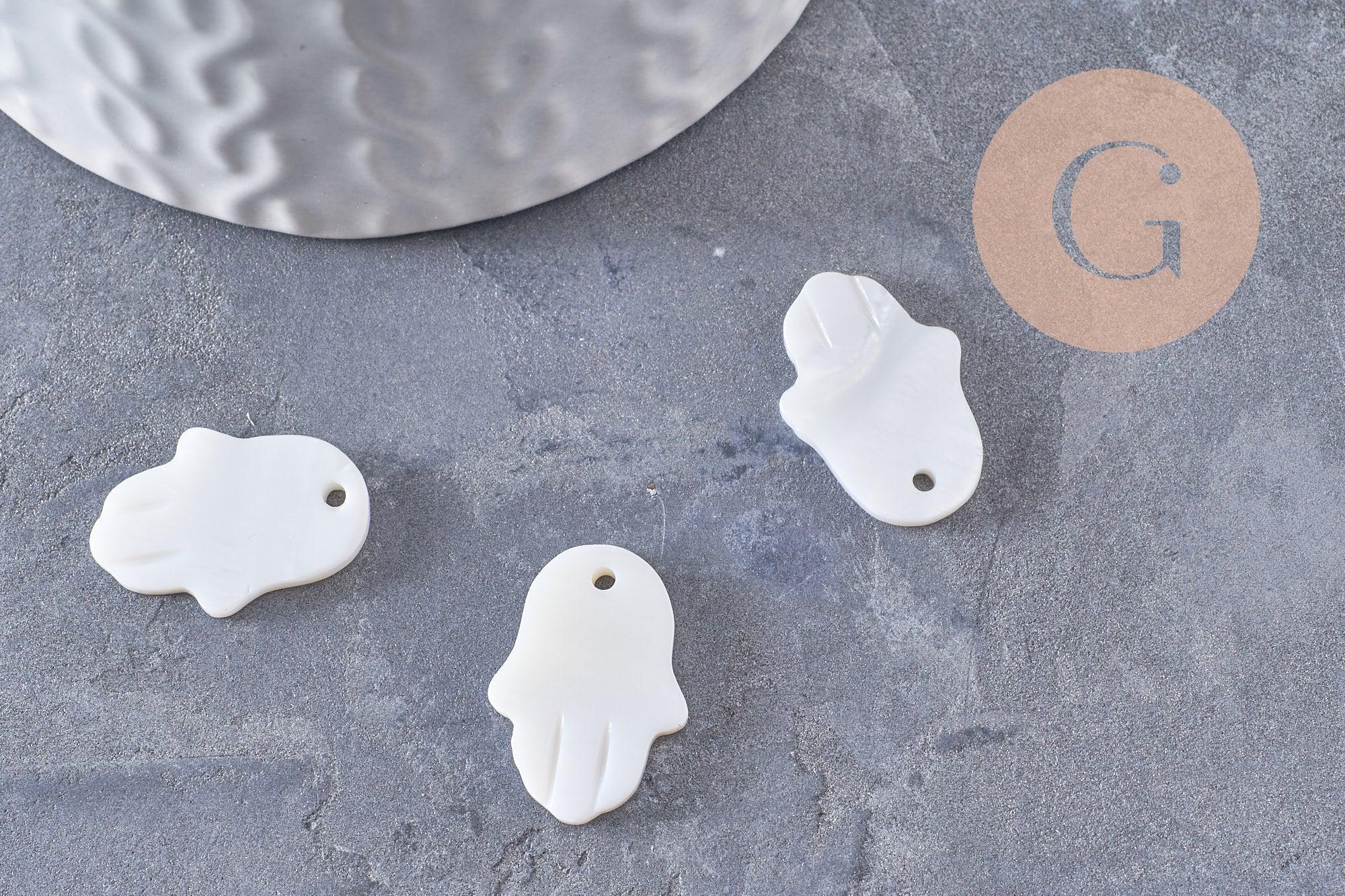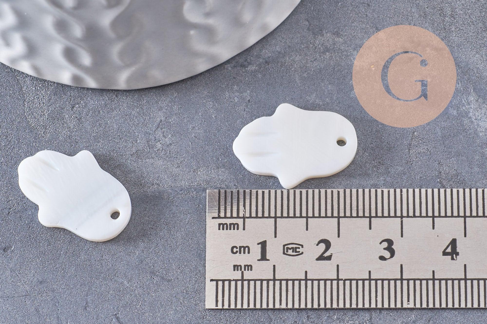 Pendentif main hamsa nacre blanche naturelle 20mm, x1 (G9933)