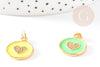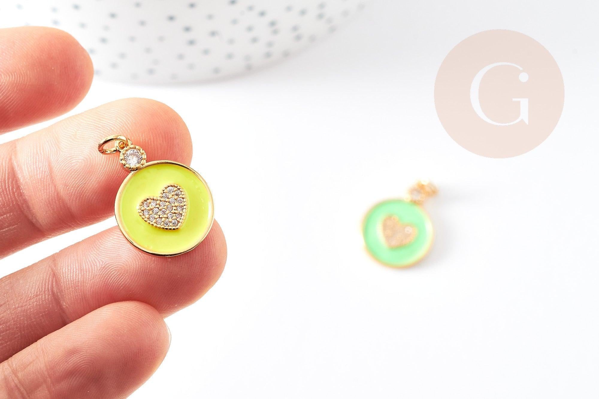 Colgante medalla corazón redondo de latón dorado esmaltado y circonitas, colgante insecto de latón, sin níquel, 22 mm, x1 G4064