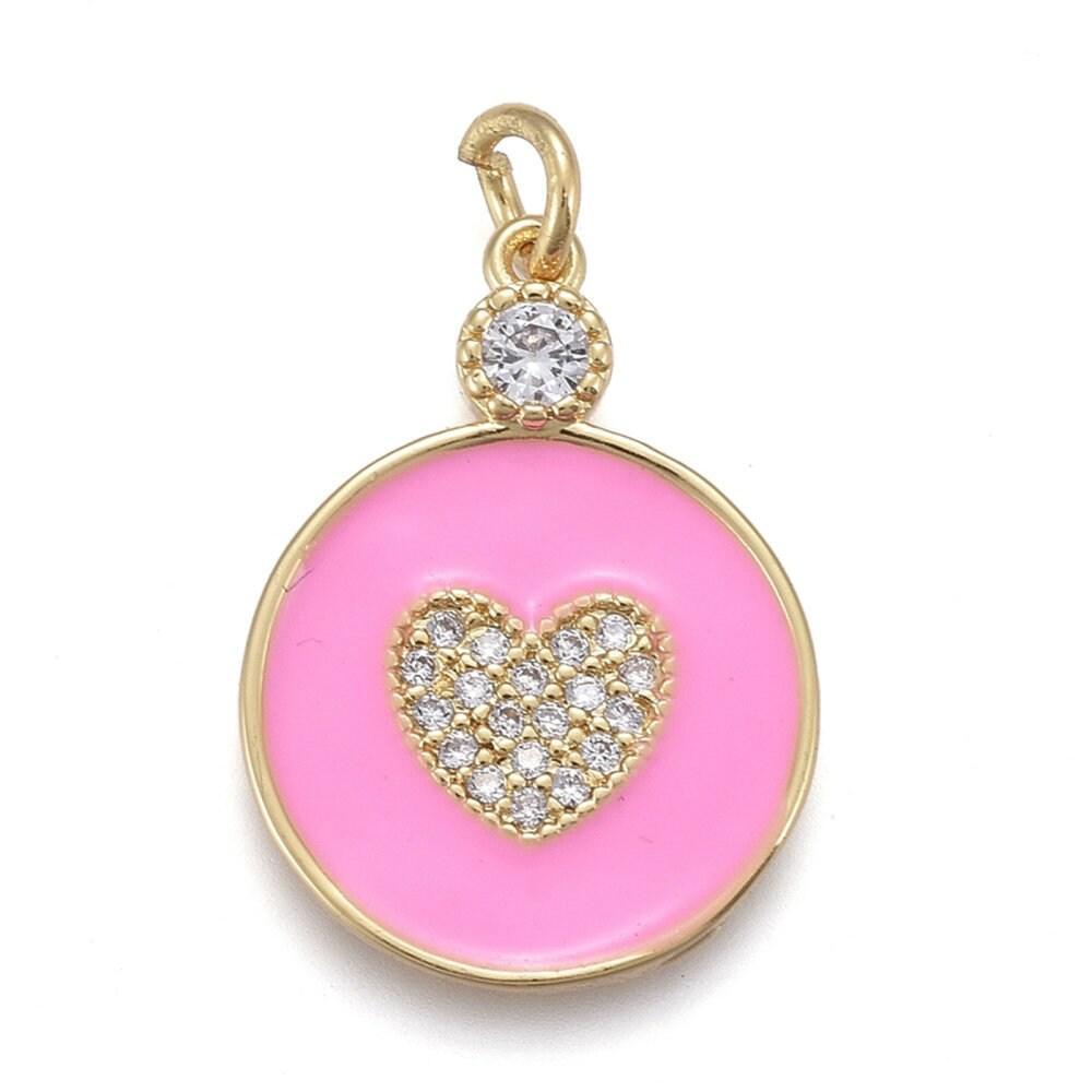 Colgante medallón de corazón redondo de esmalte de latón chapado en oro y circonitas, colgante de insecto de latón, sin níquel, 22 mm, cada uno