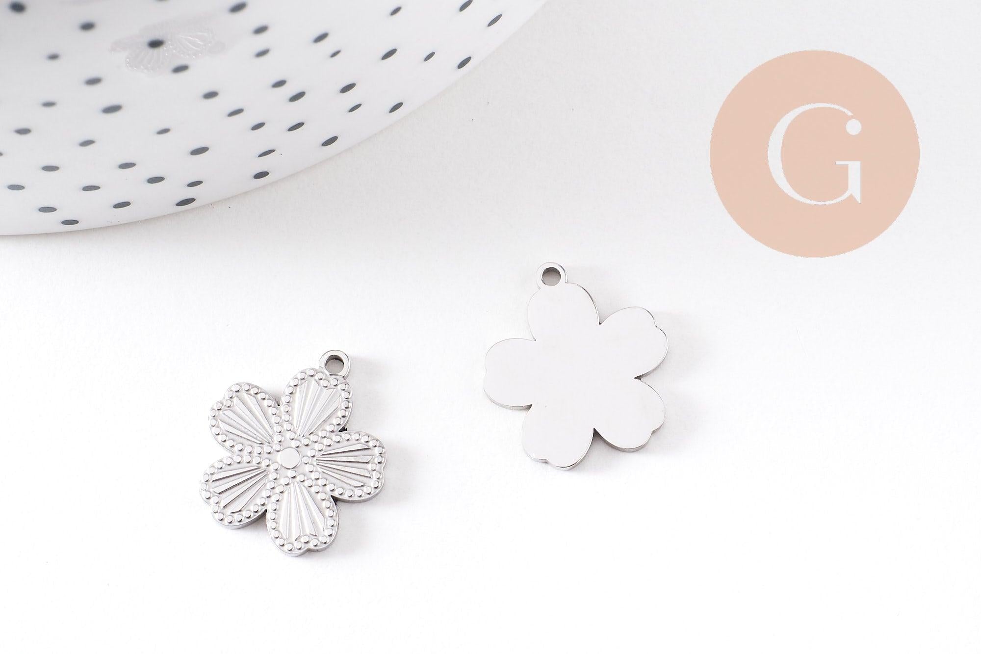 Colgante de medalla con flor redonda, acero inoxidable 304, platino, 17,5 mm, x1 (G10480)