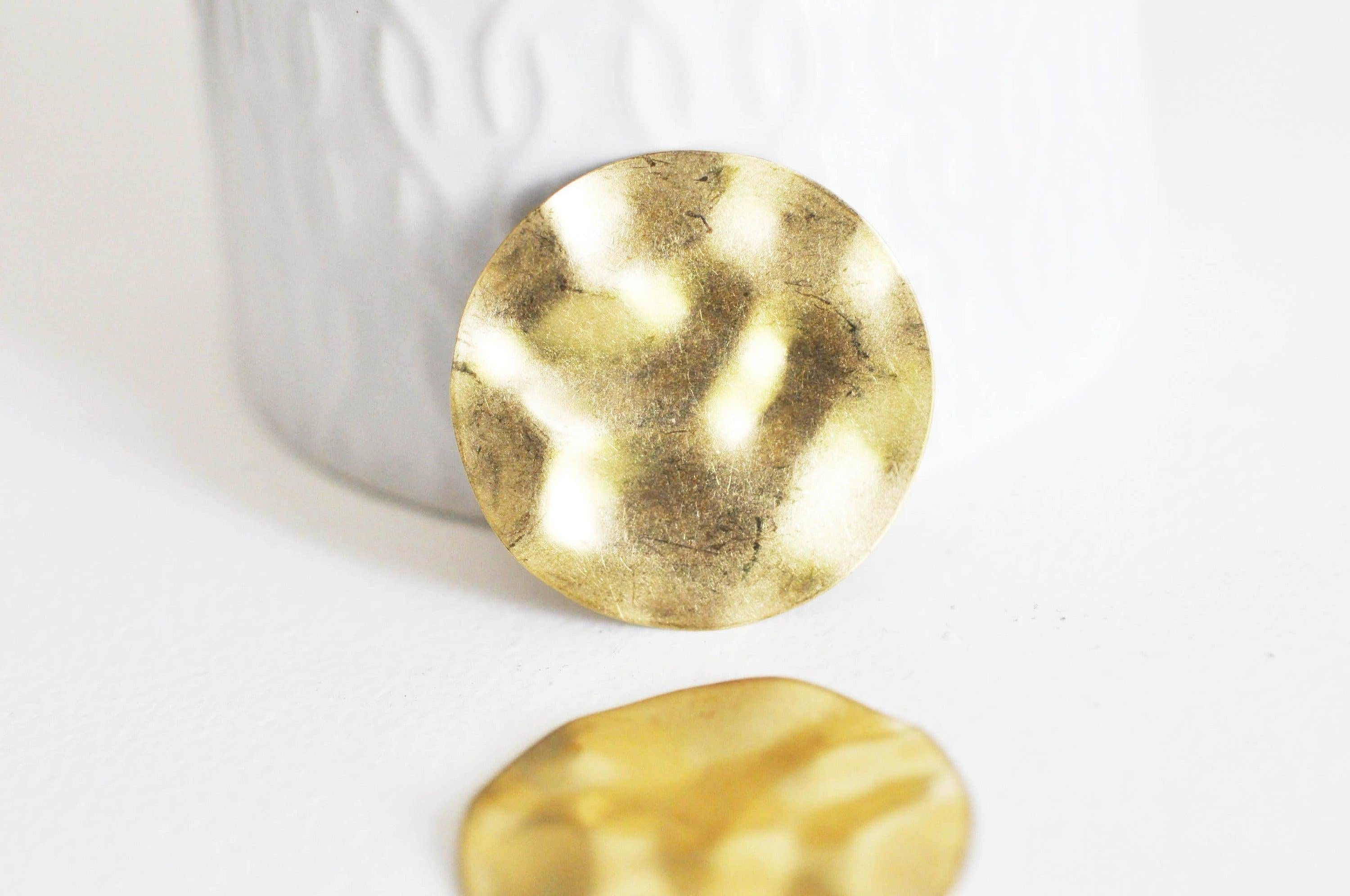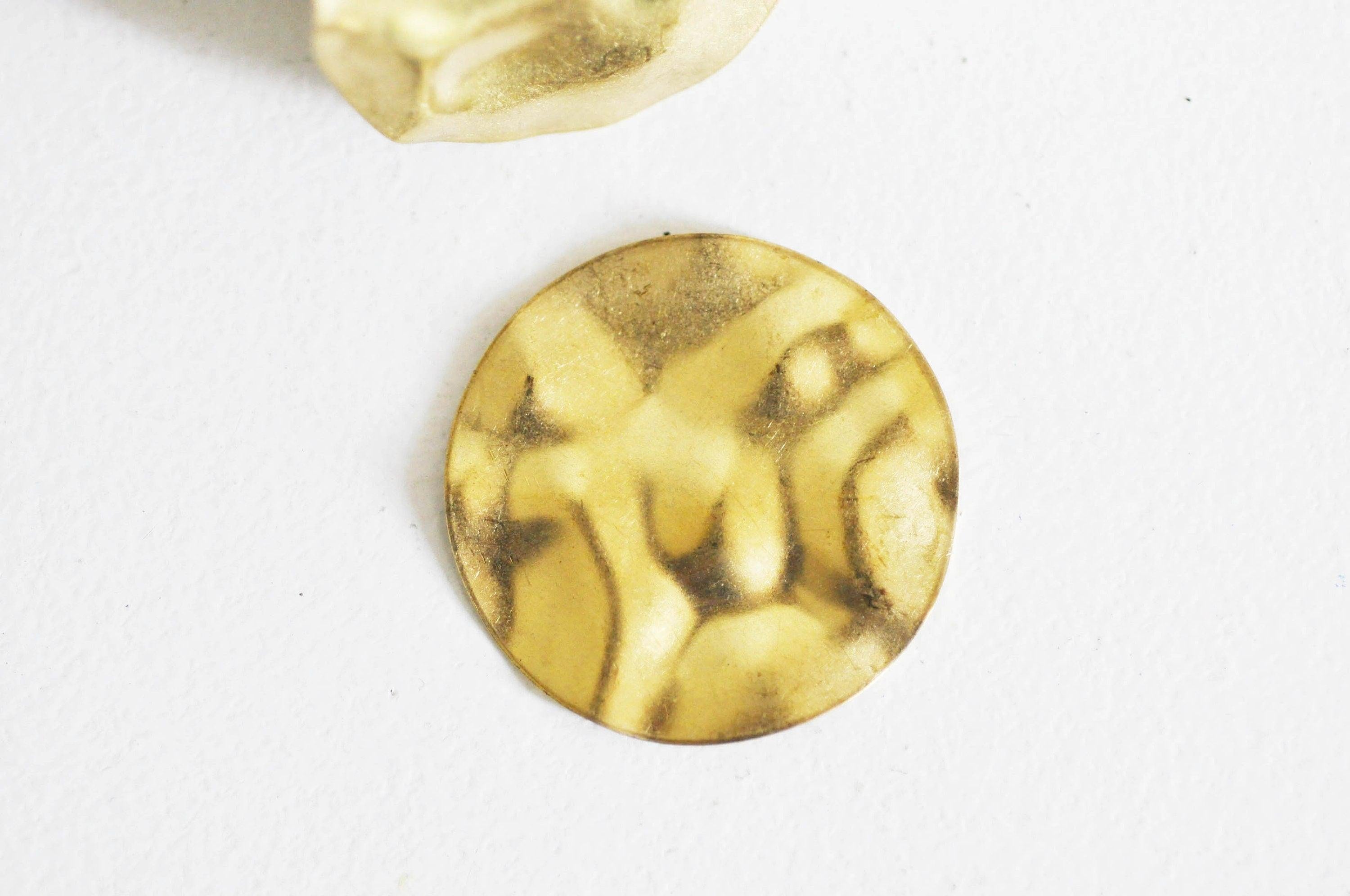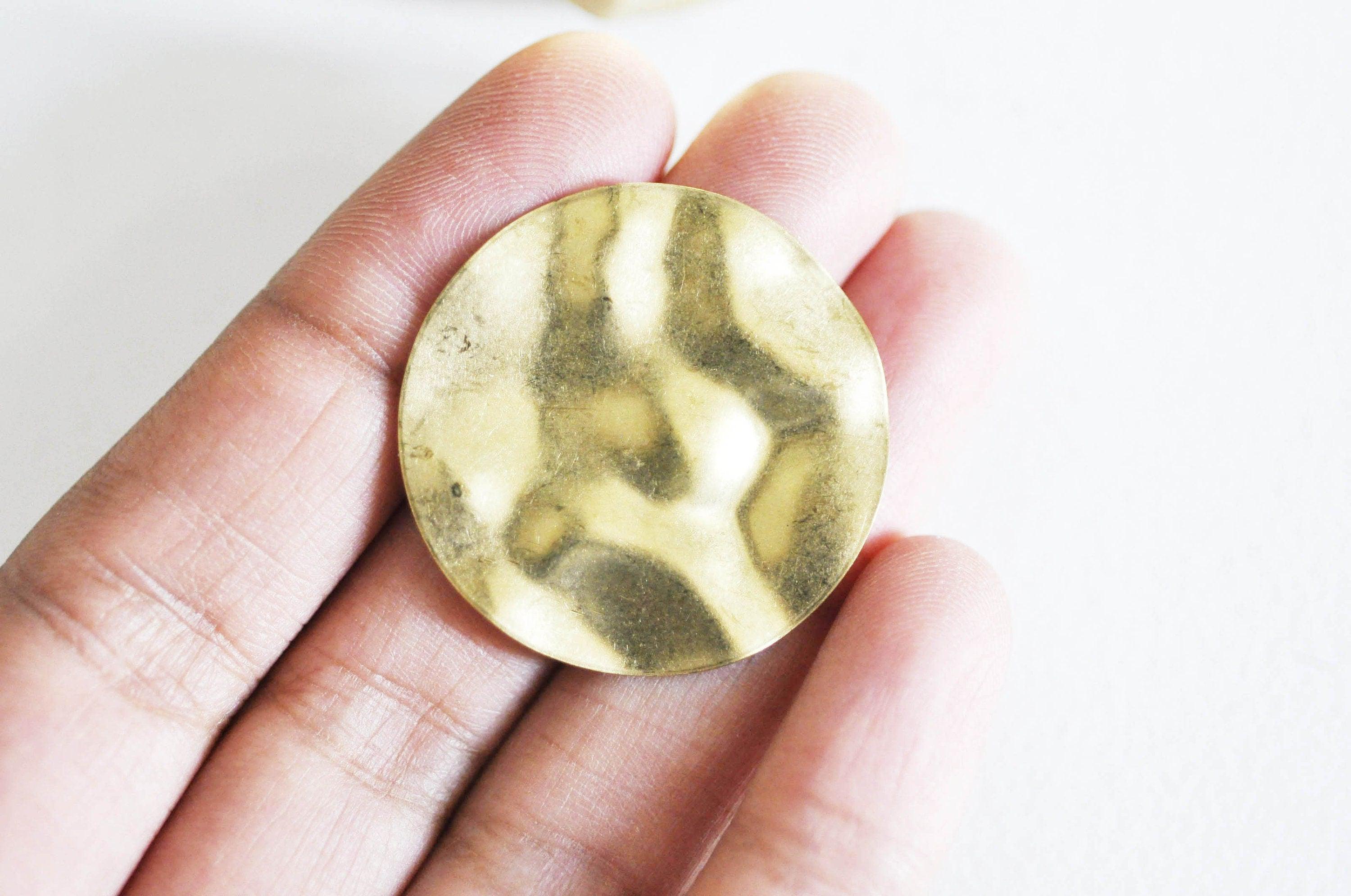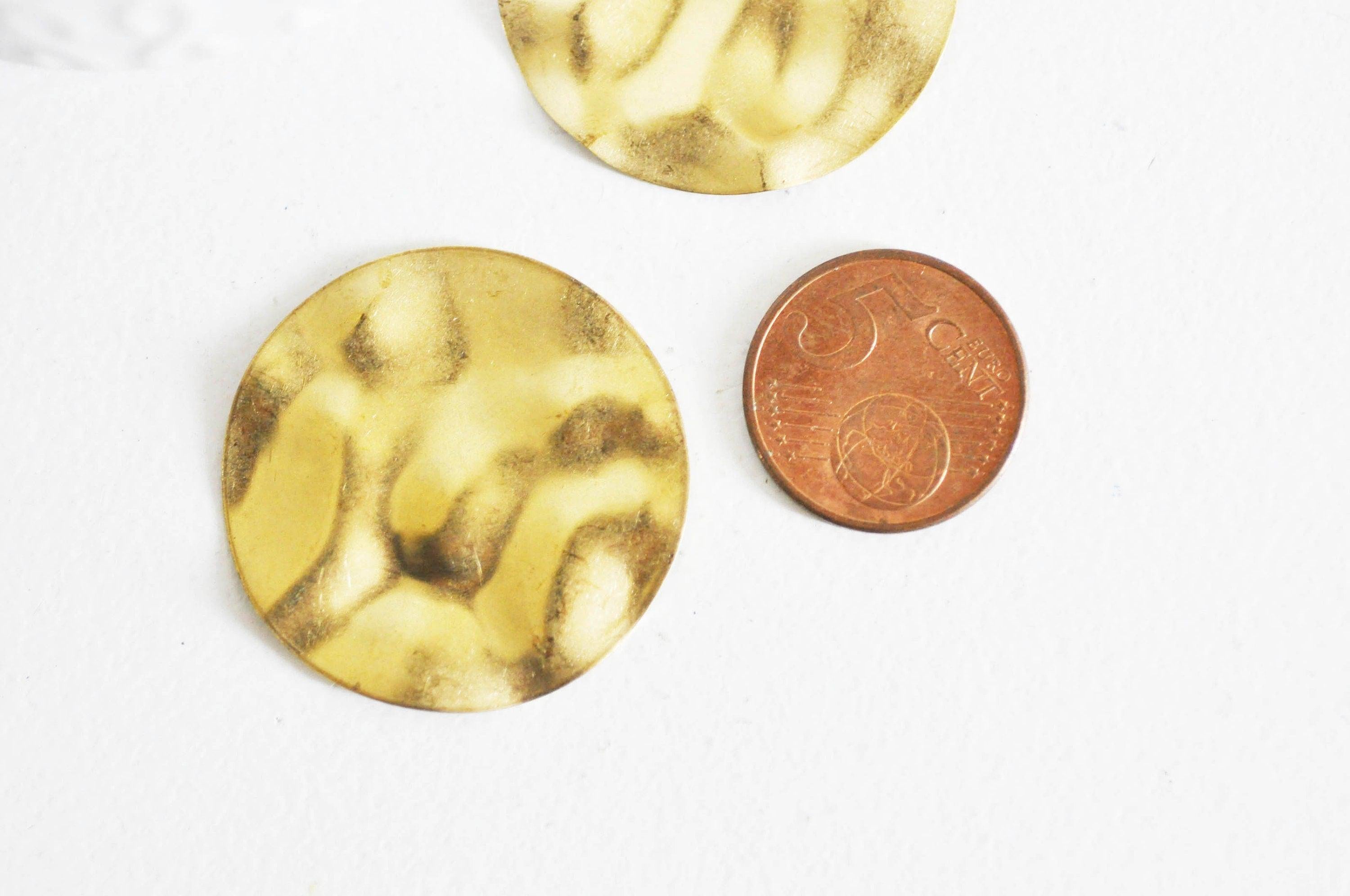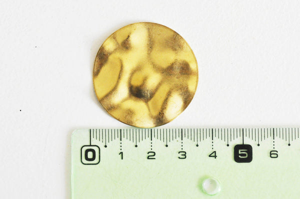 Colgante de medalla redonda martillada en latón crudo, sin perforar, sin níquel, chapado en oro, latón crudo, medalla redonda, 35 mm, X2 (G2758)