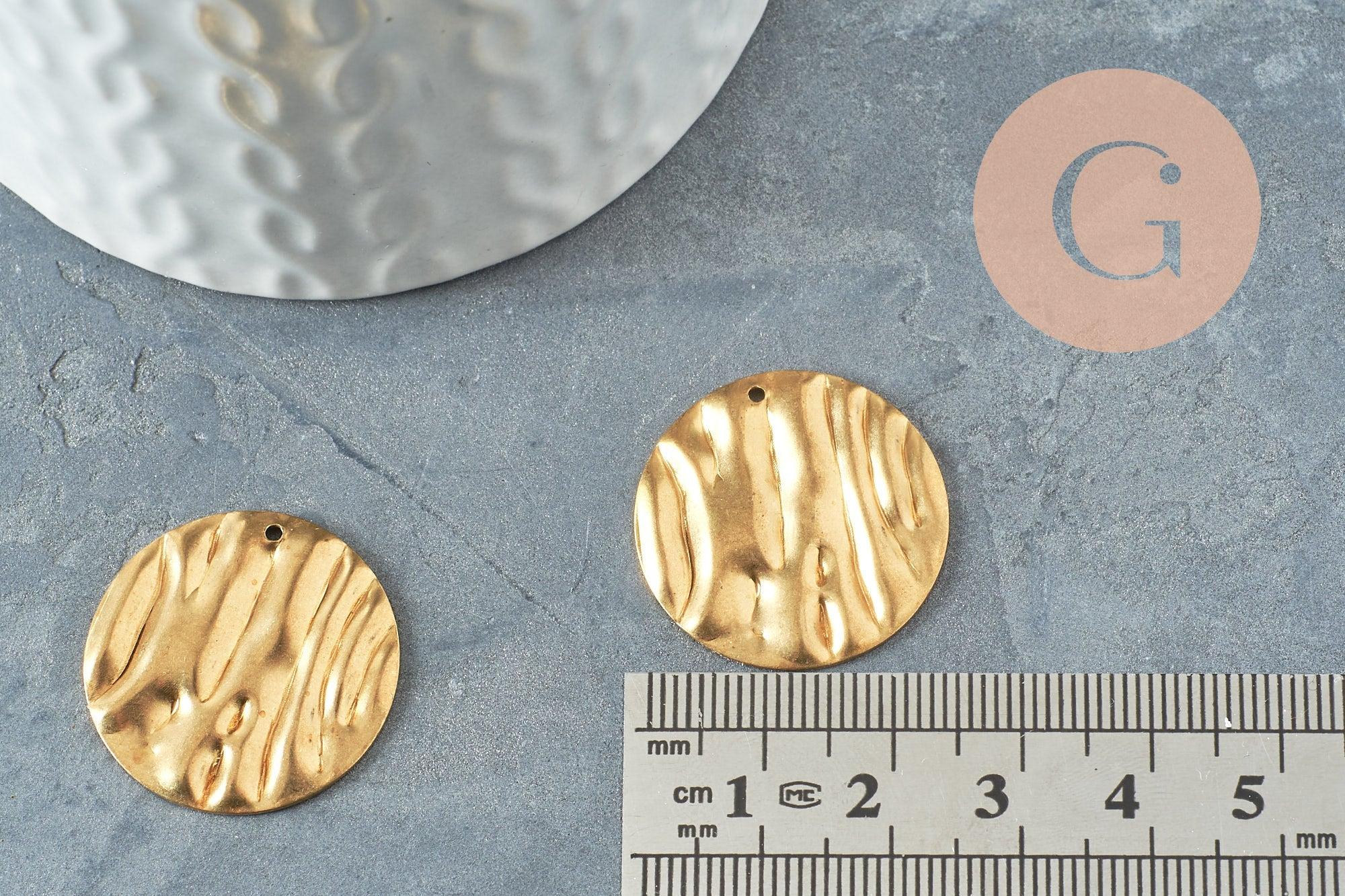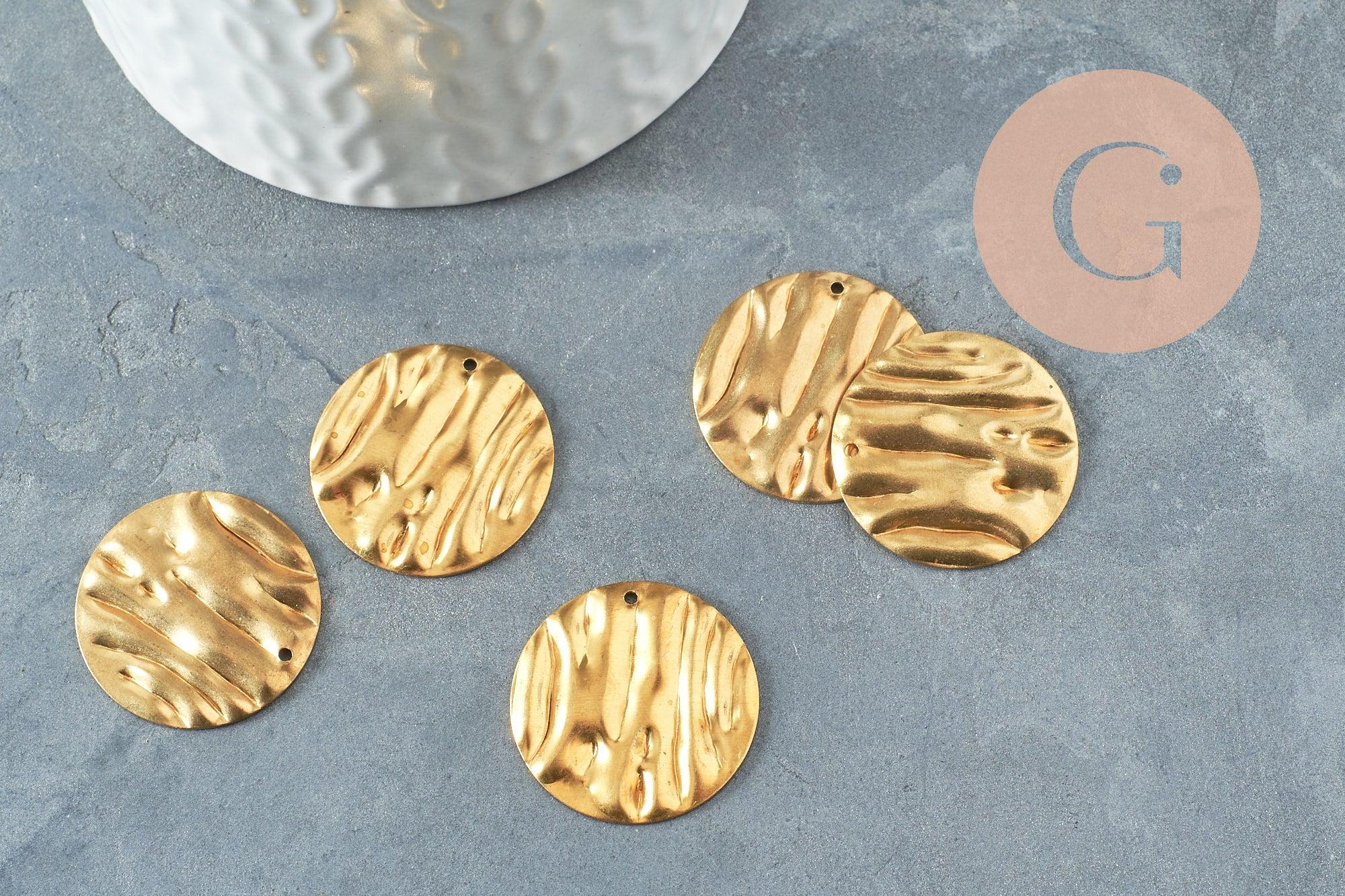 Colgante medalla redonda martillada ignes latón crudo, acabado dorado, sin níquel, medalla de oro, latón crudo, medalla redonda, 25 mm, juego de 5