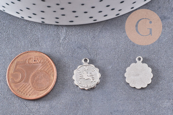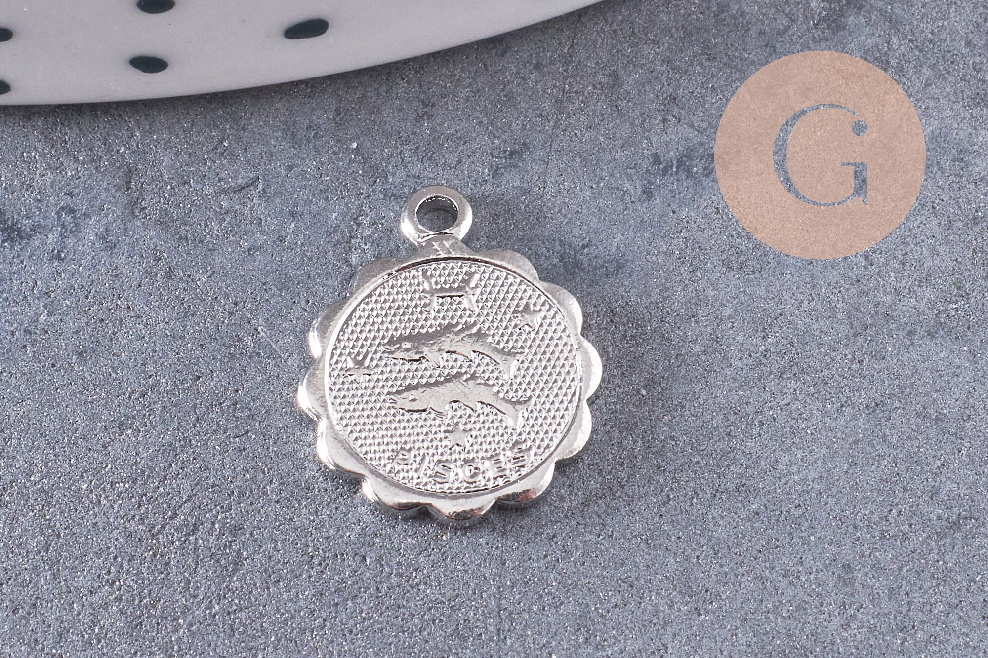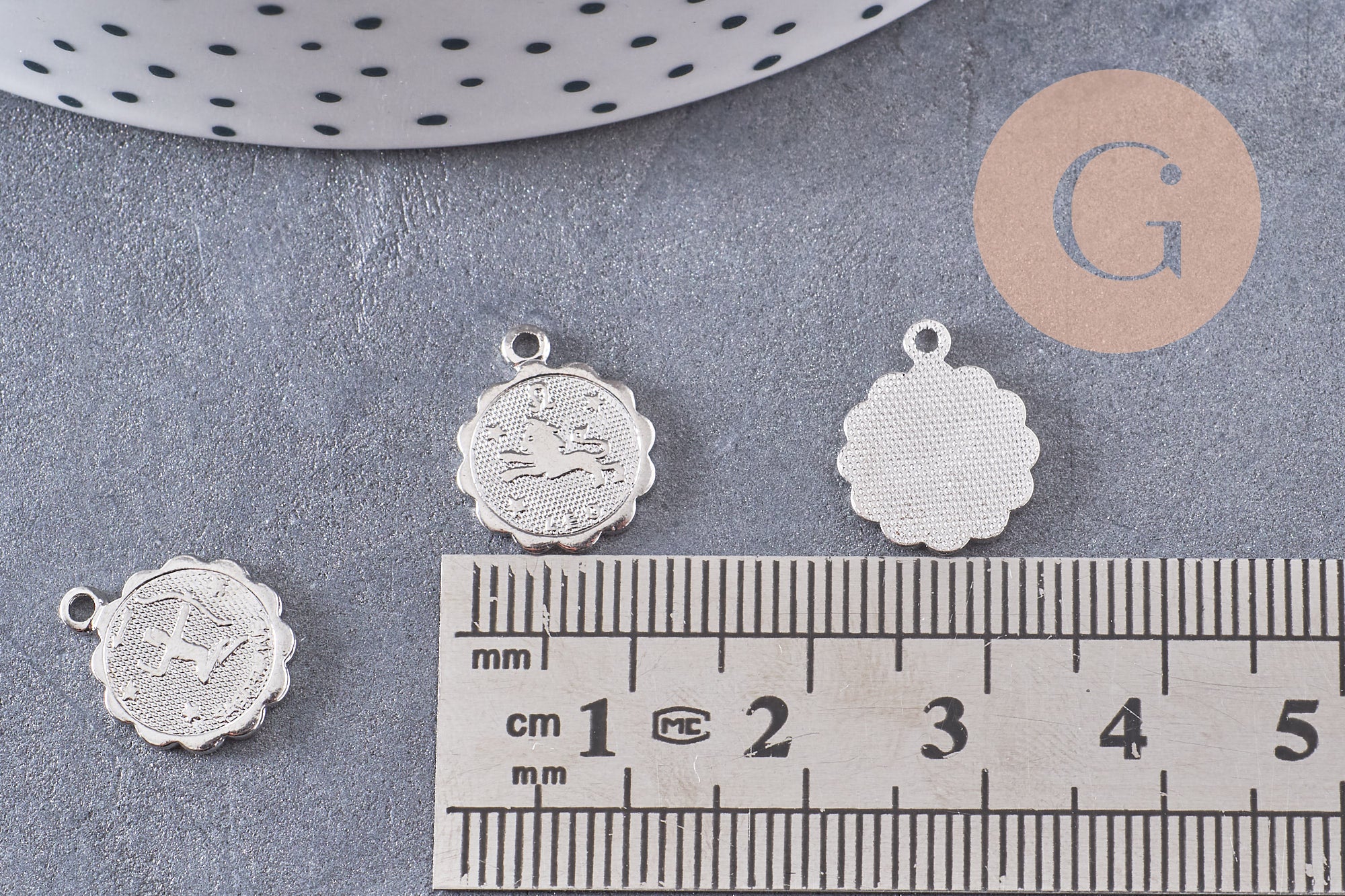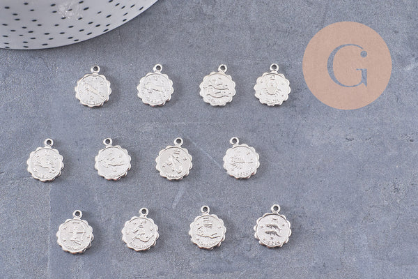 Una bonita medalla redonda de latón plateado sobre el tema de la astrología, que representa el signo astrológico de su elección.