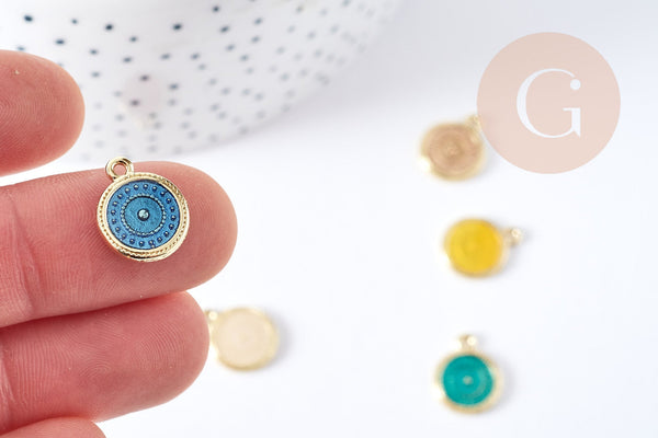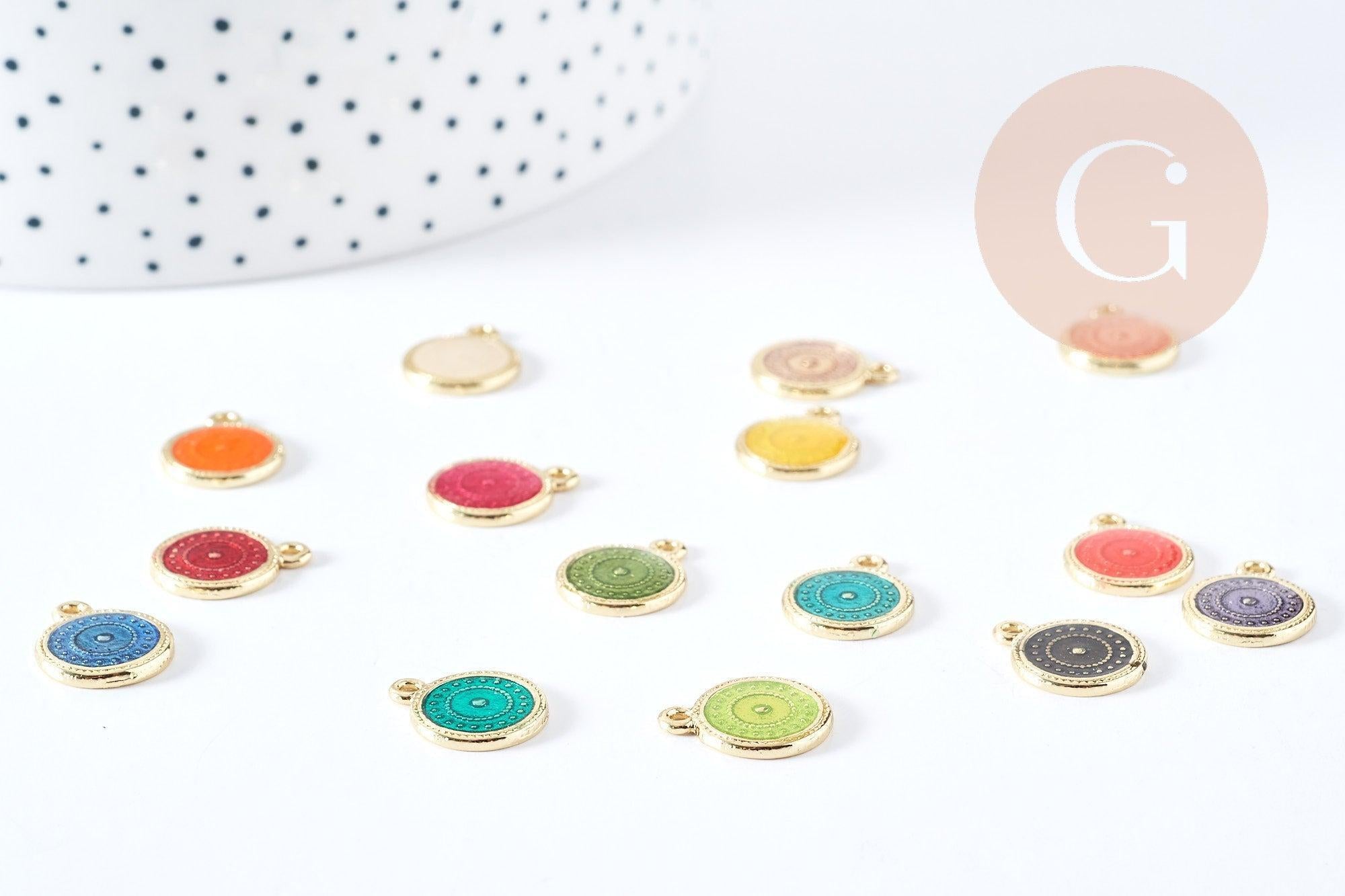 colgante medalla redonda esmalte color zamac oro 18k 15mm, colgante para la creación de joyas de la suerte x1 x5 G2413