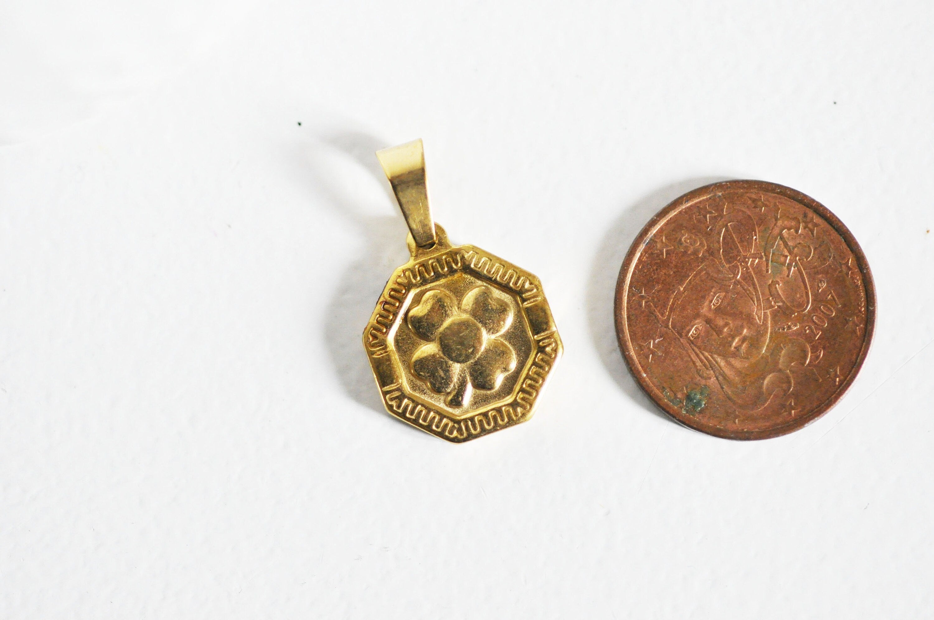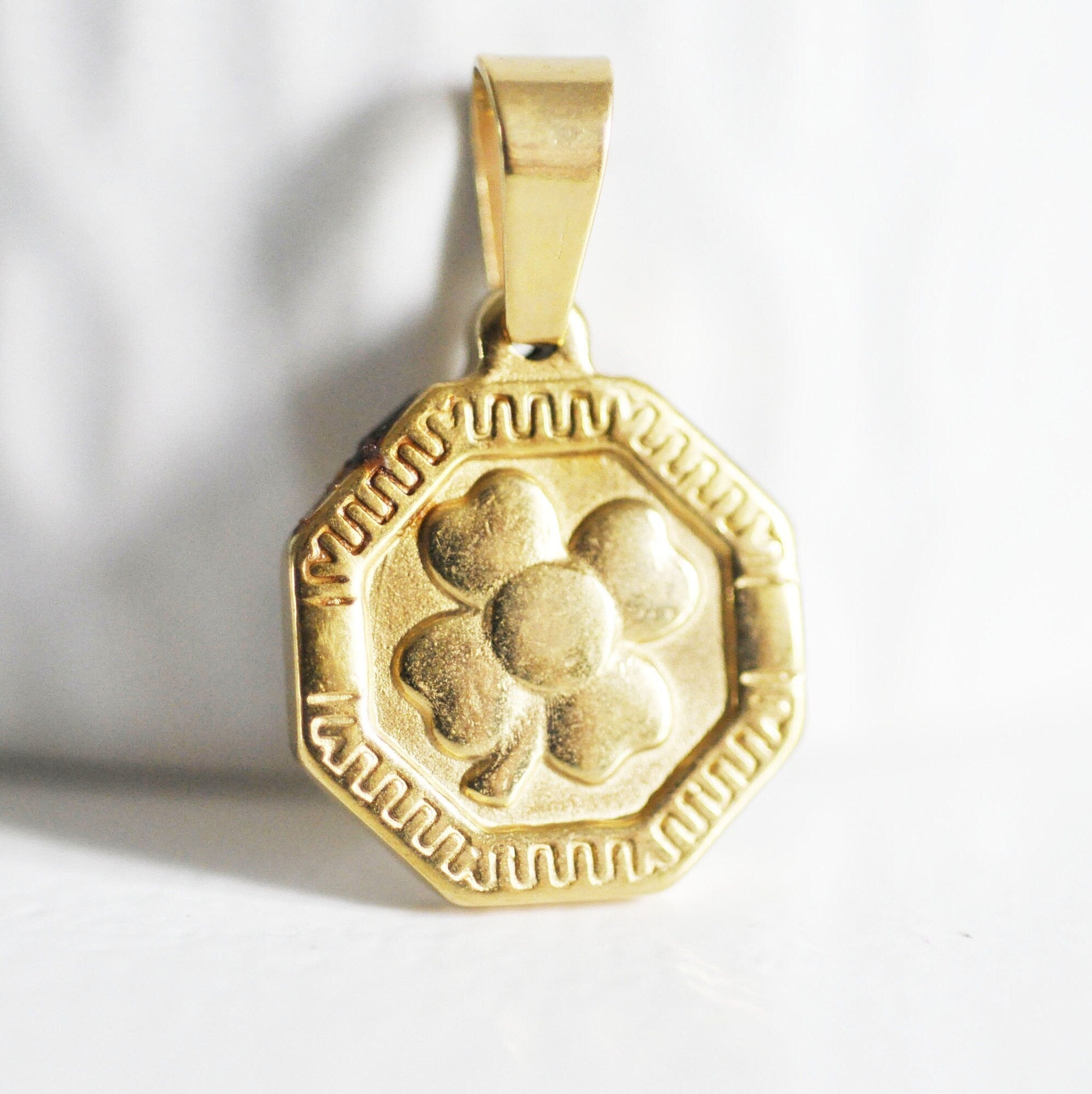 EP Colgante medalla de trébol de acero dorado, colgante dorado, sin níquel, latón dorado, creación de joyas, medalla de oro, 18 mm, G3061