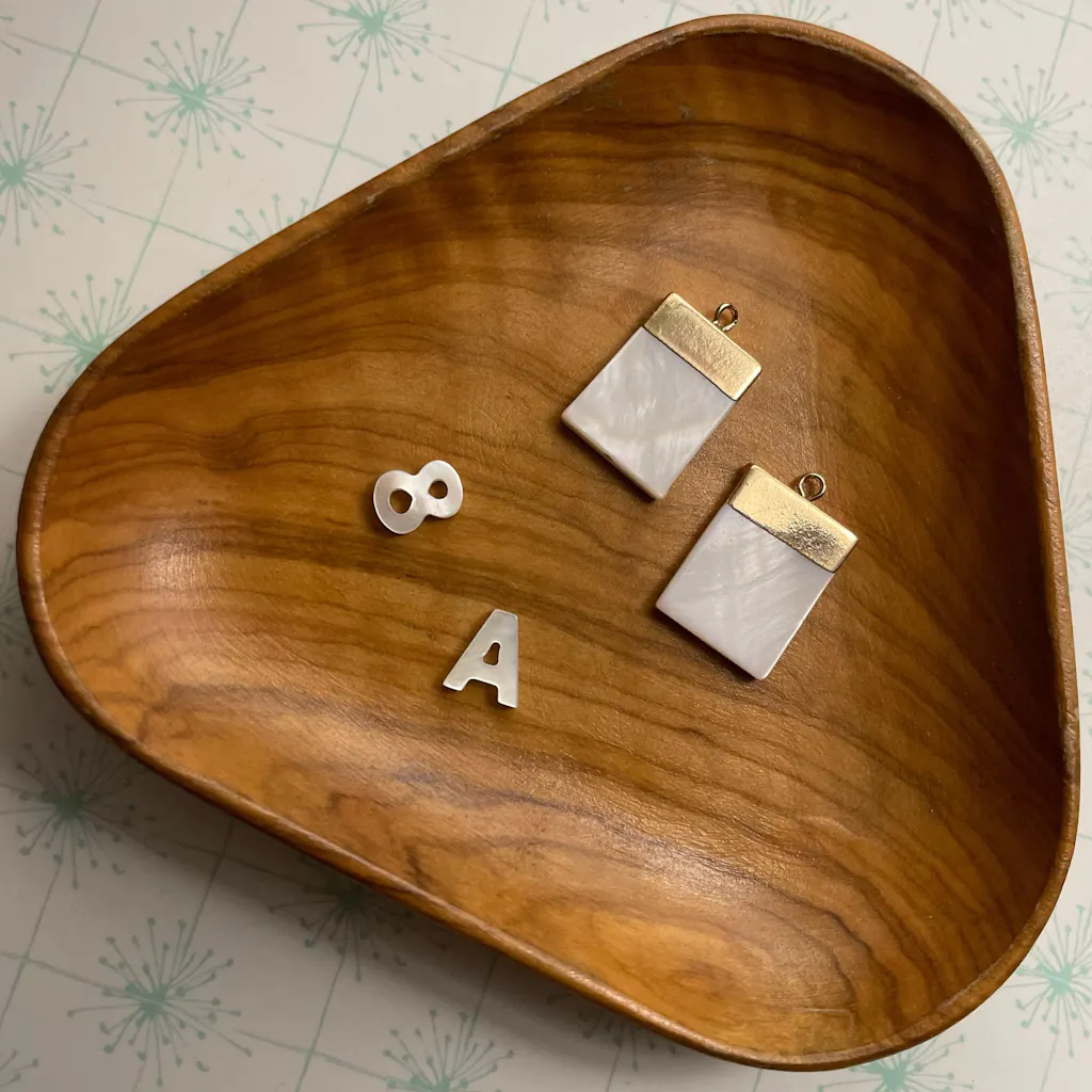Otros colgantes en nácar y en otros colores y materiales están disponibles en la tienda gingerlily .