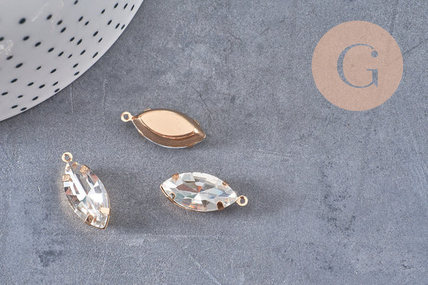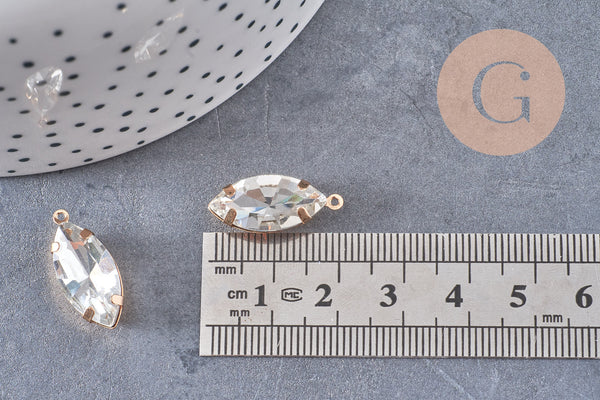 Colgante lanzadera de cristal, colgante de cristal, colgante dorado, cristal blanco, creación de joyas, marquesa dorada, 21mm-G1095