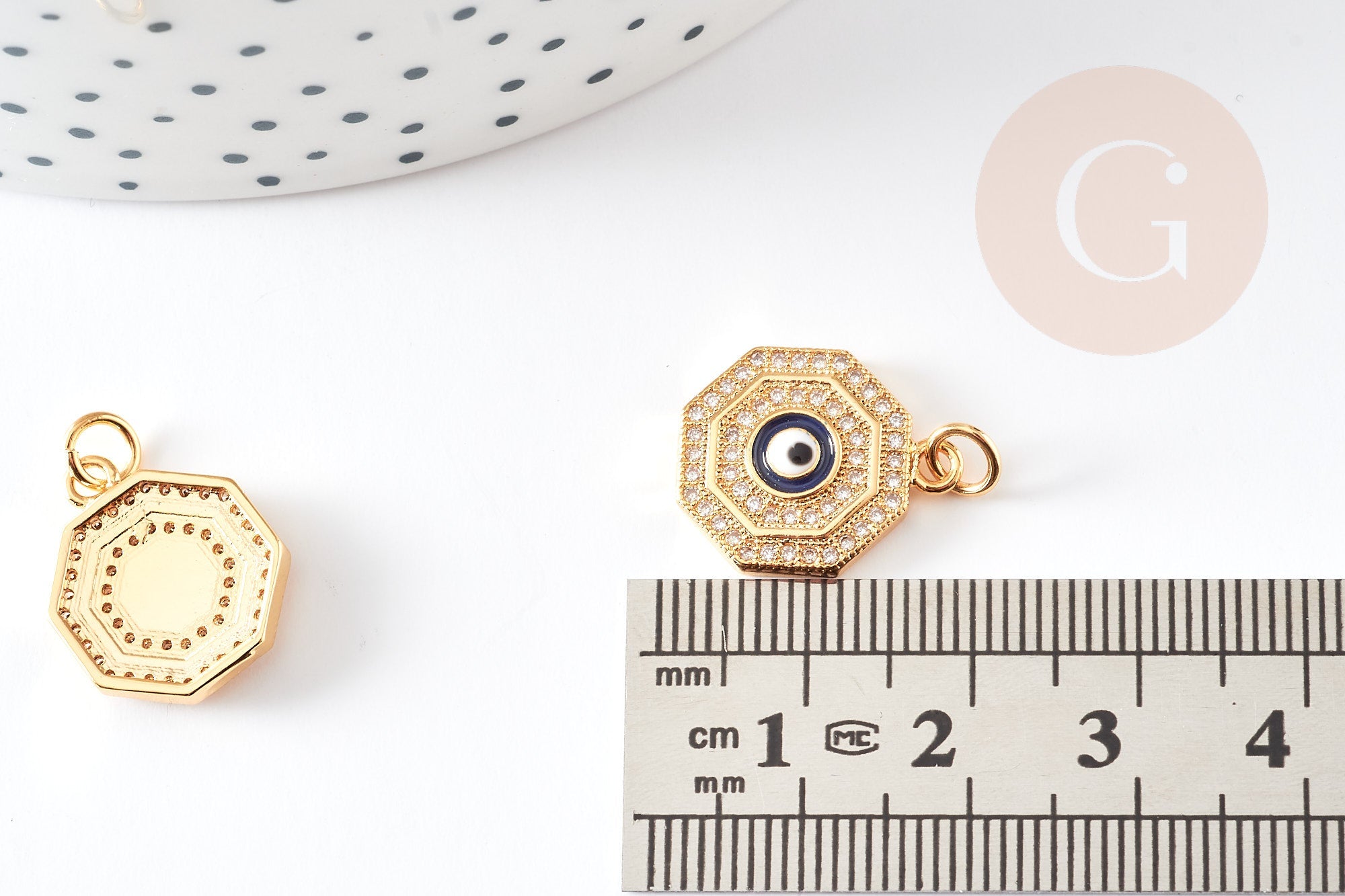 Ya sea que esté buscando un colgante de la suerte o desee agregar un toque de protección a sus diseños de joyería, este colgante de ojo de cristal de circonita octogonal de latón en tono dorado es una opción ideal. Haga su pedido ahora para crear joyas que combinen elegancia y simbolismo.