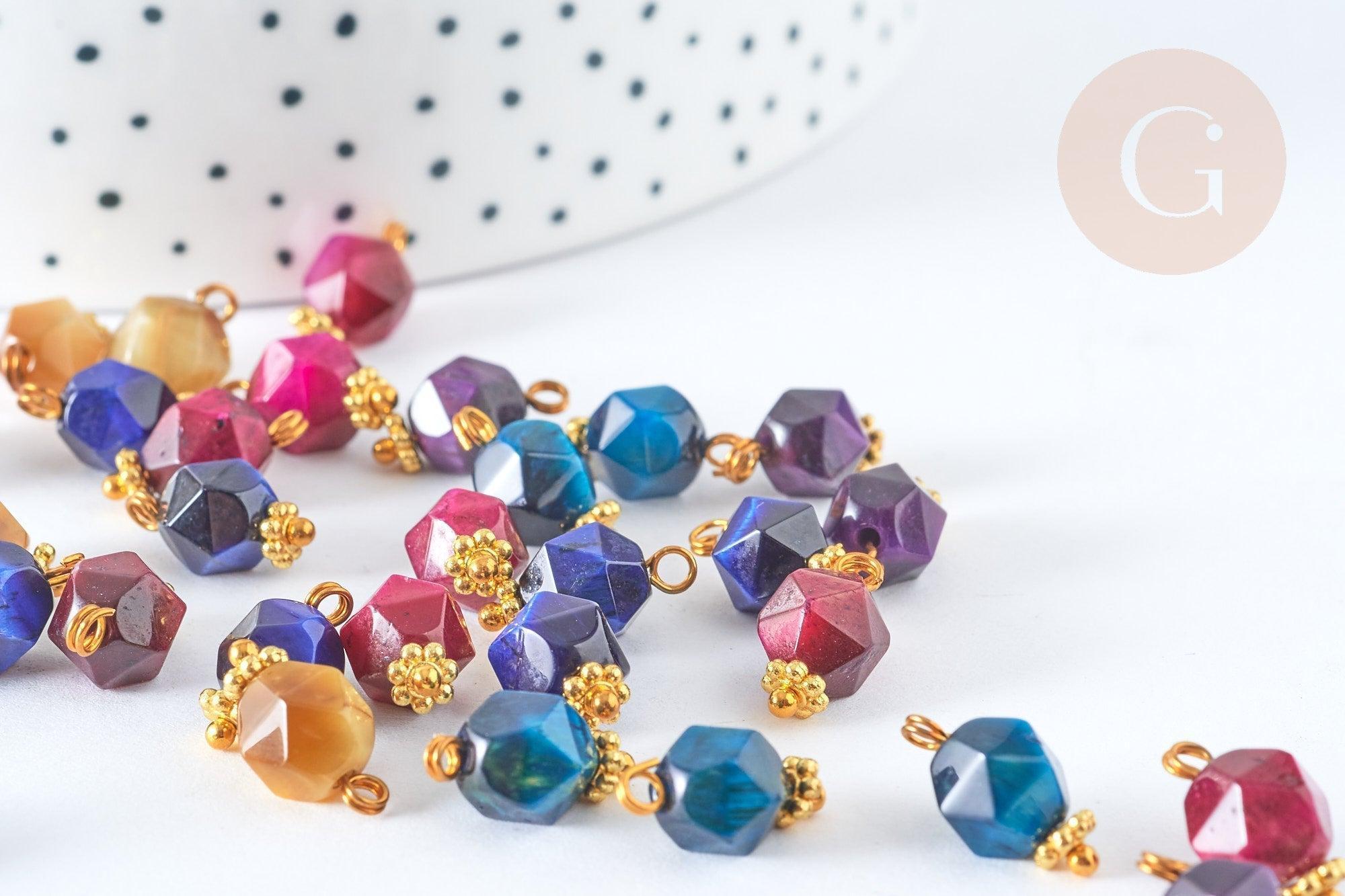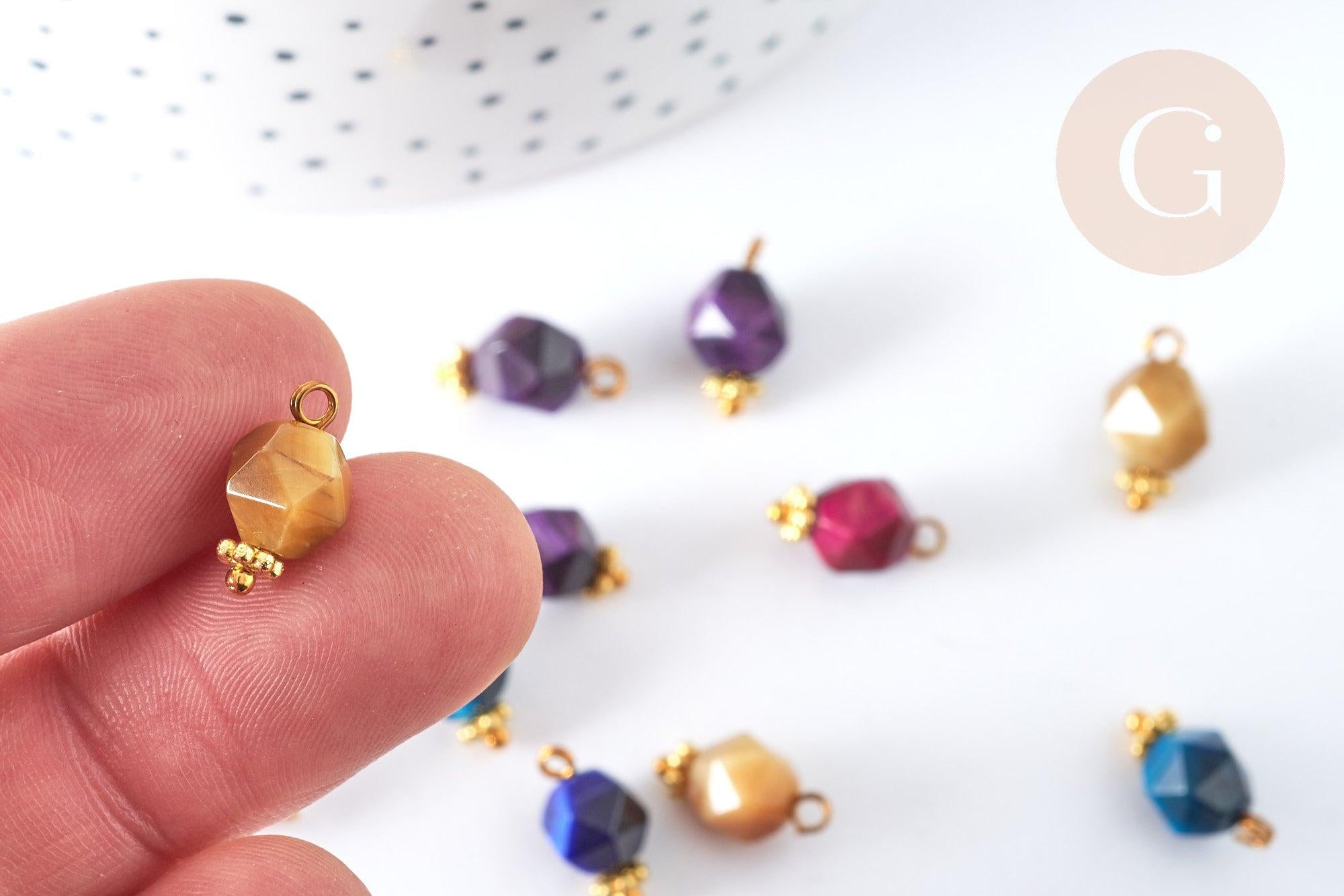 Adopte este colgante en ojo de tigre teñido natural , piedra fina. Además, está montado en un bucle. en zamac dorado . ¡Esto te permitirá colgarlo donde quieras!
