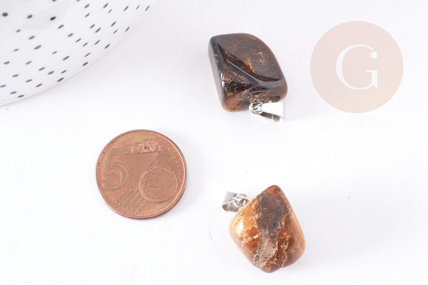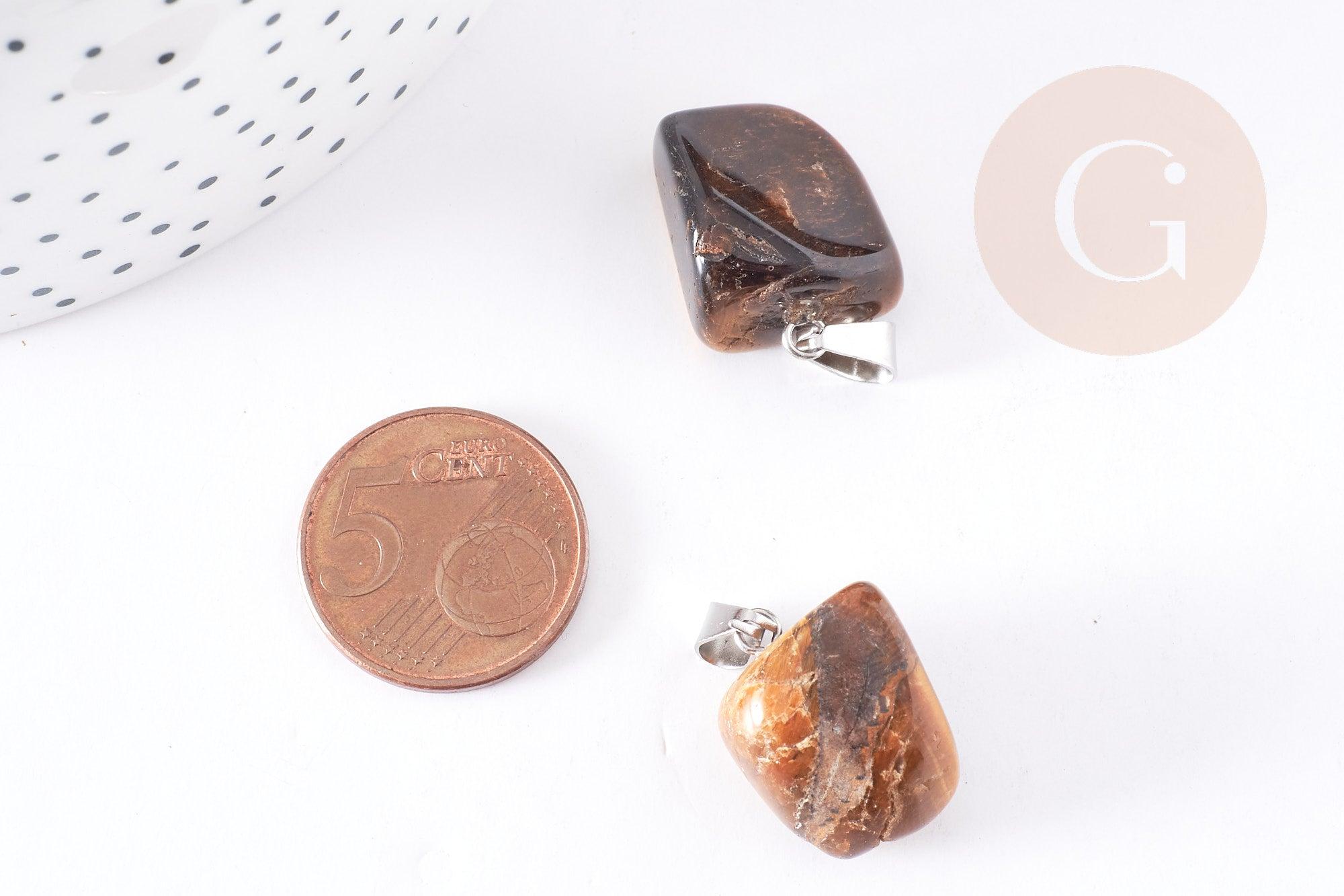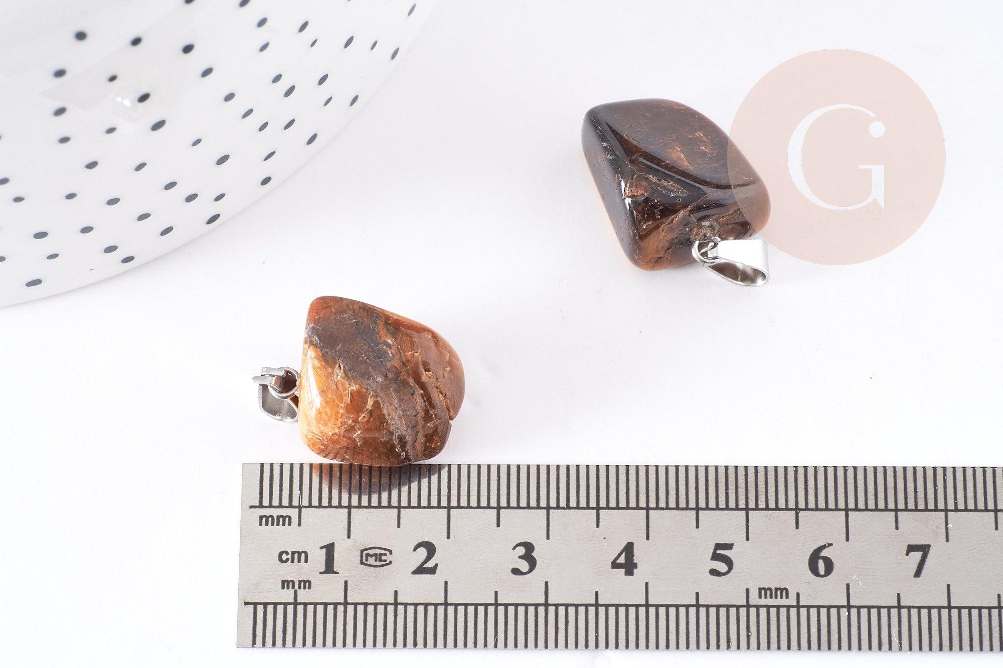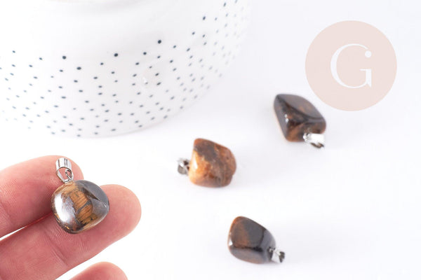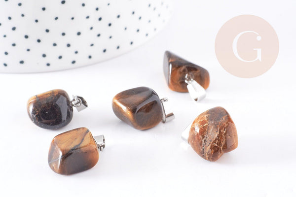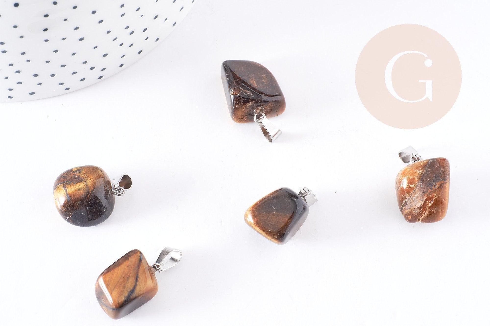 Colgante de ojo de tigre natural en bruto con su soporte de acero inoxidable platino.