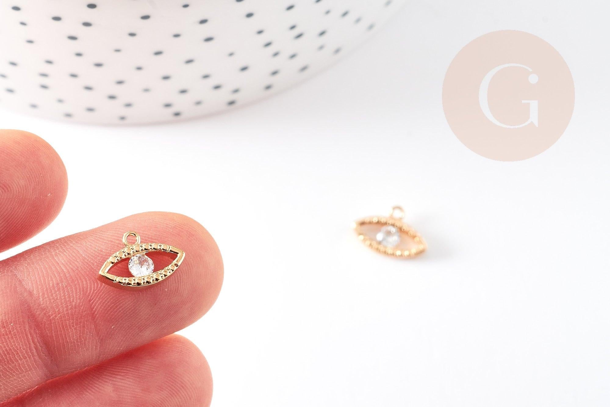 Colgante ojo dorado, cristal de circón, colgante dorado, amuleto de la suerte, latón dorado, colgante estrella, creación de joyas, 10,5 mm, juego de 2