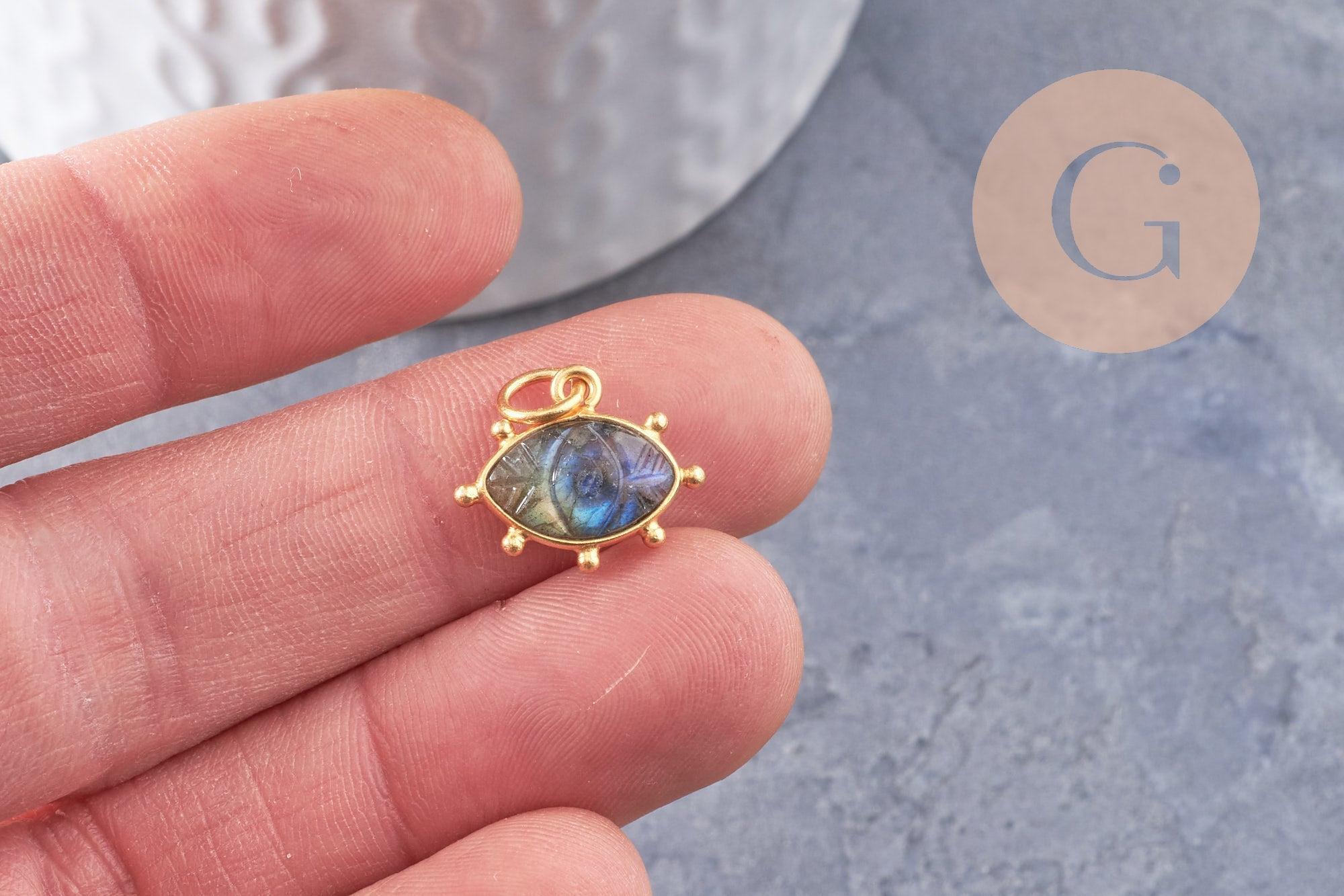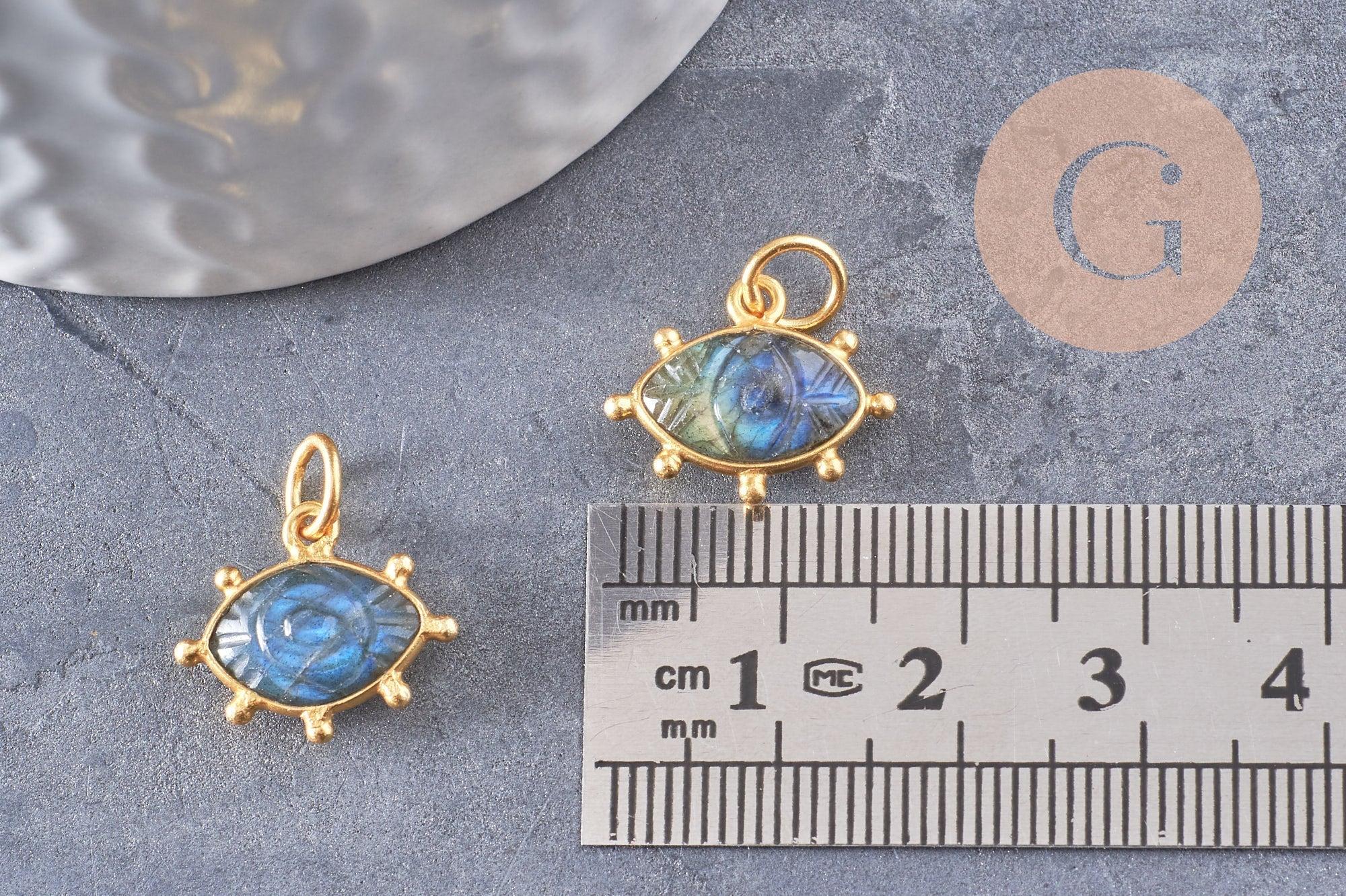 Pendentif oeil labradorite naturelle argent 925 doré 18K 15mm, pendentif amulette pierre naturelle x1 (G9866)