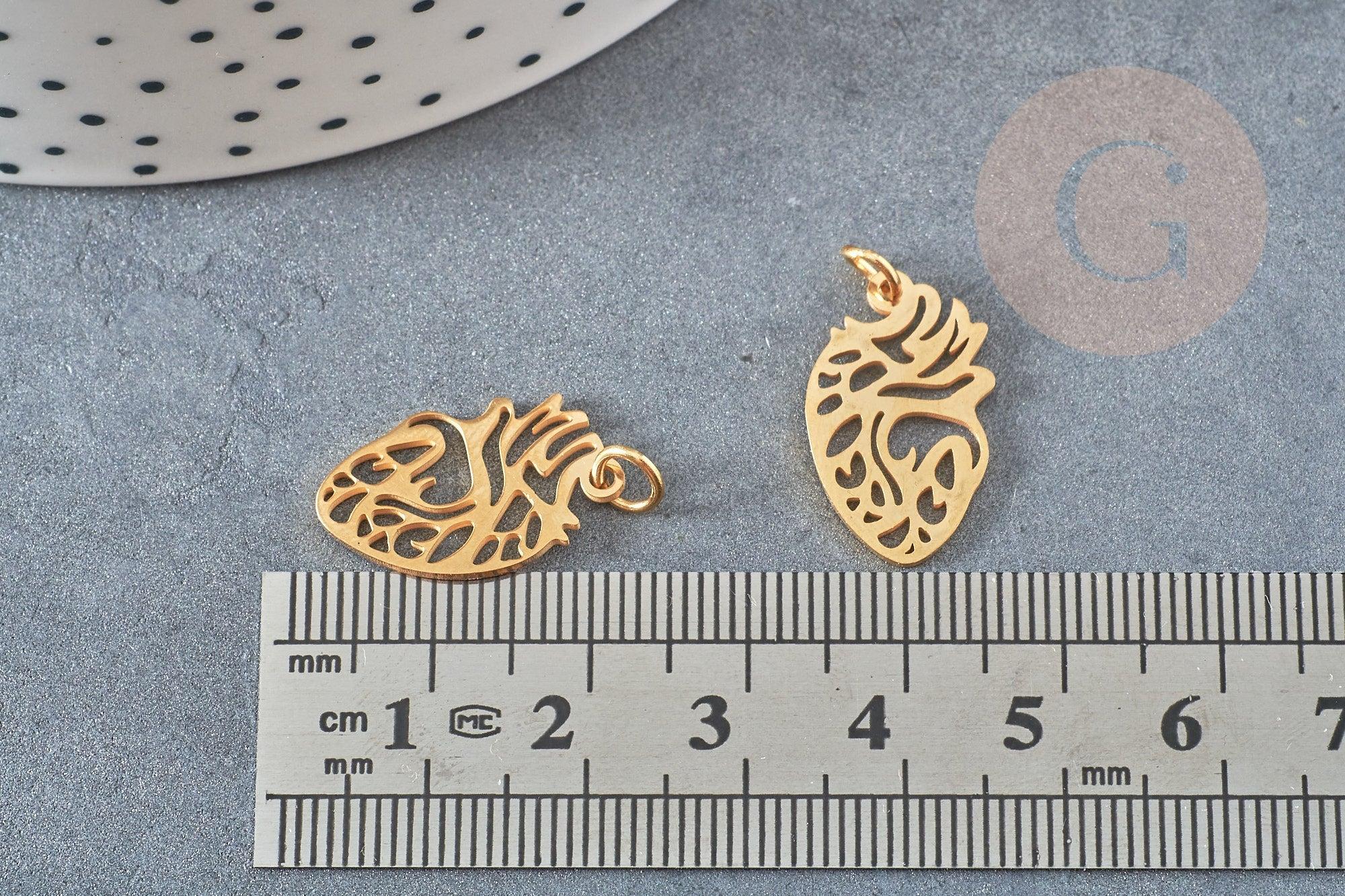 Colgante de órgano con forma de corazón ahuecado en acero dorado 20 mm, charm dorado, acero inoxidable dorado, colgante sin níquel, x1 G7784