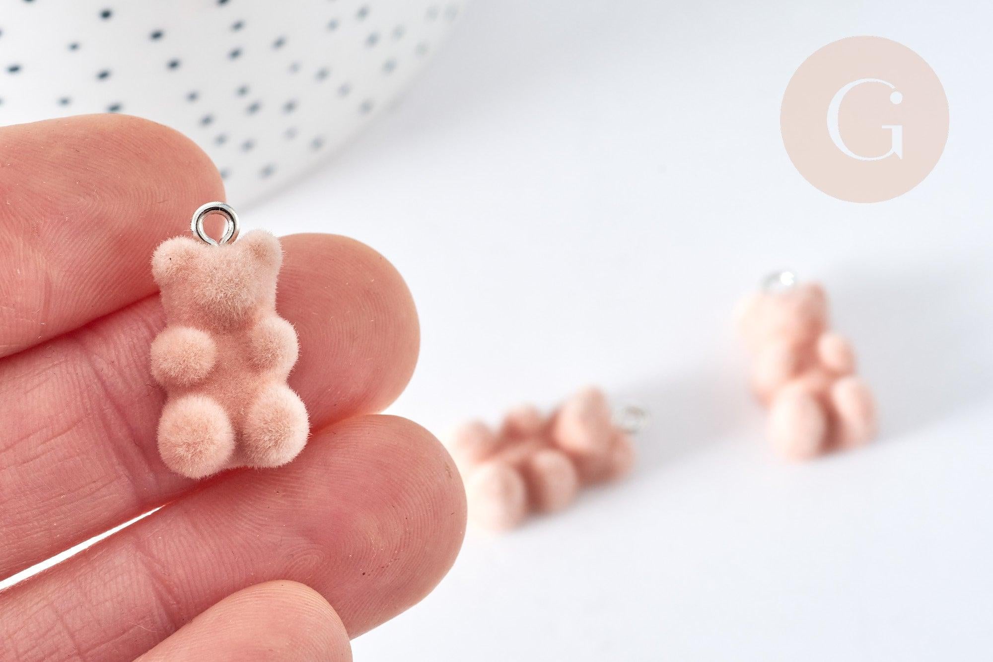 Los colgantes de osito de peluche de resina , con flocado de color beige, son un recurso increíble para darle vida a tus creativas ideas de joyería con temática infantil .