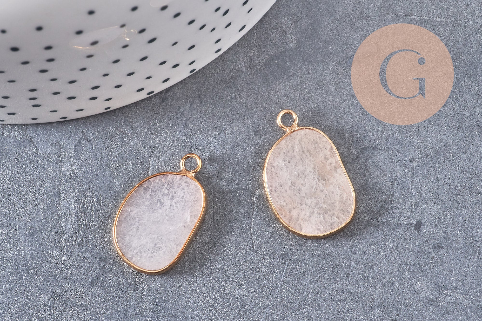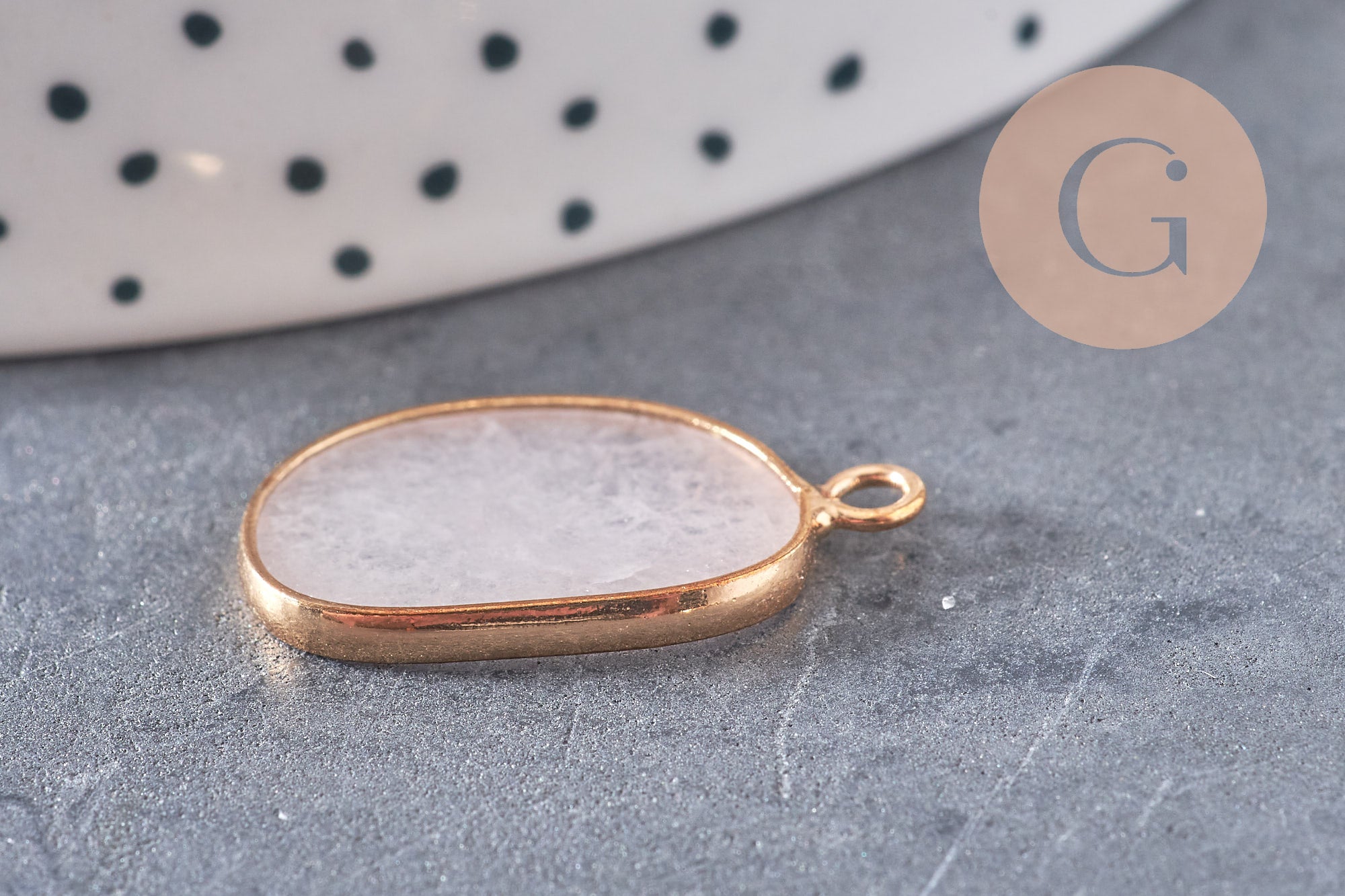 Déjate seducir por este colgante ovalado de jade natural teñido de rosa , montado sobre un soporte de latón dorado , ideal para crear joyas delicadas y modernas con un toque bohemio y chic . Su color suave y femenino realzará tus creaciones, ya sean minimalistas o elaboradas.