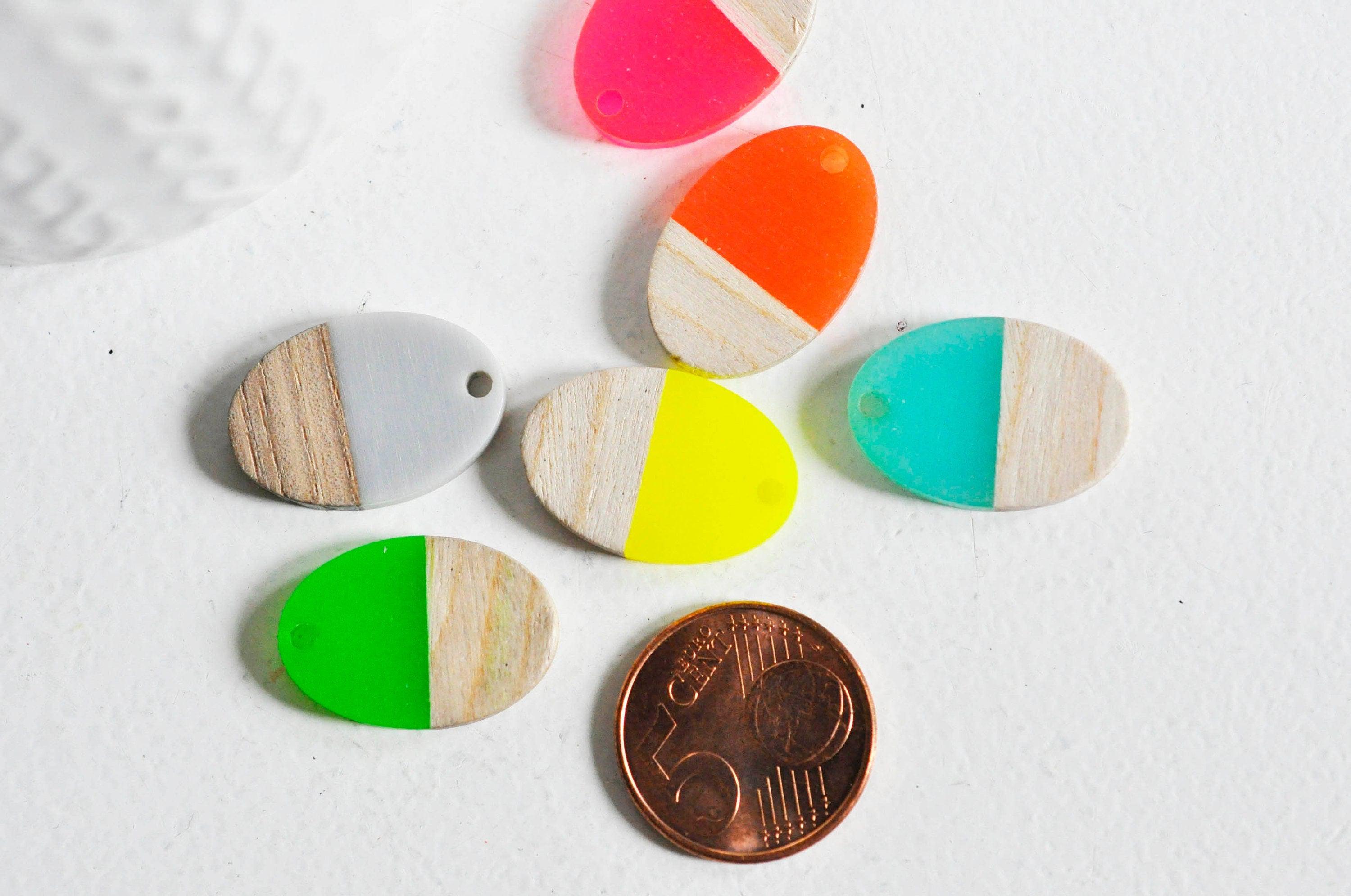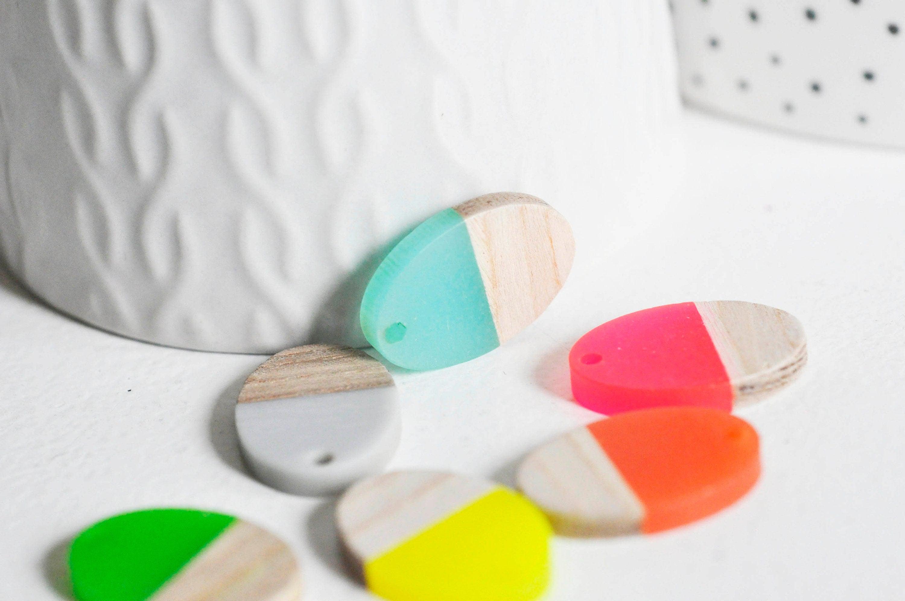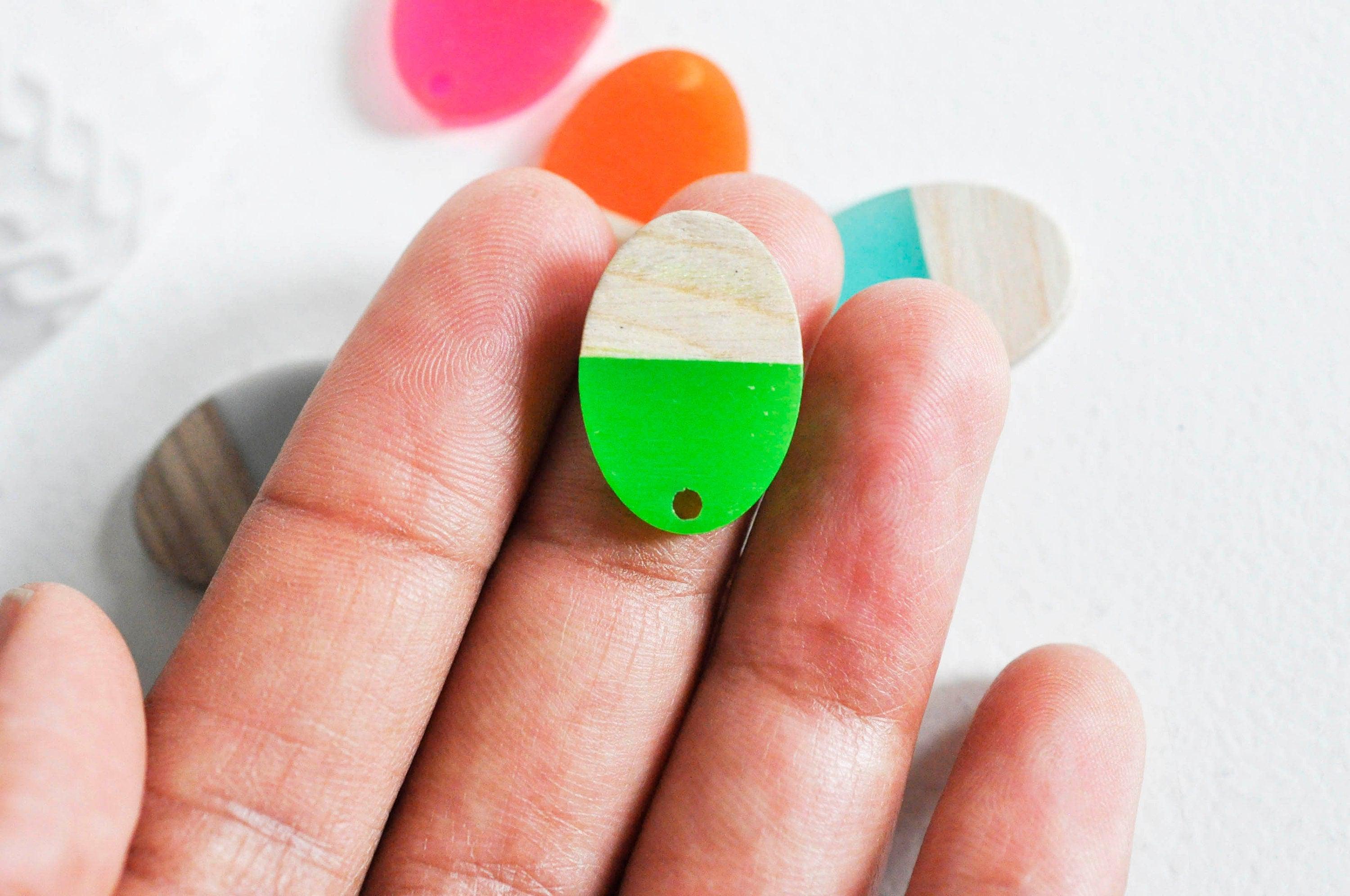 colgante de madera de resina de color ovalado, cuenta de madera natural, cuenta geométrica, cuenta de creación de joyería de madera, 23 mm, 5