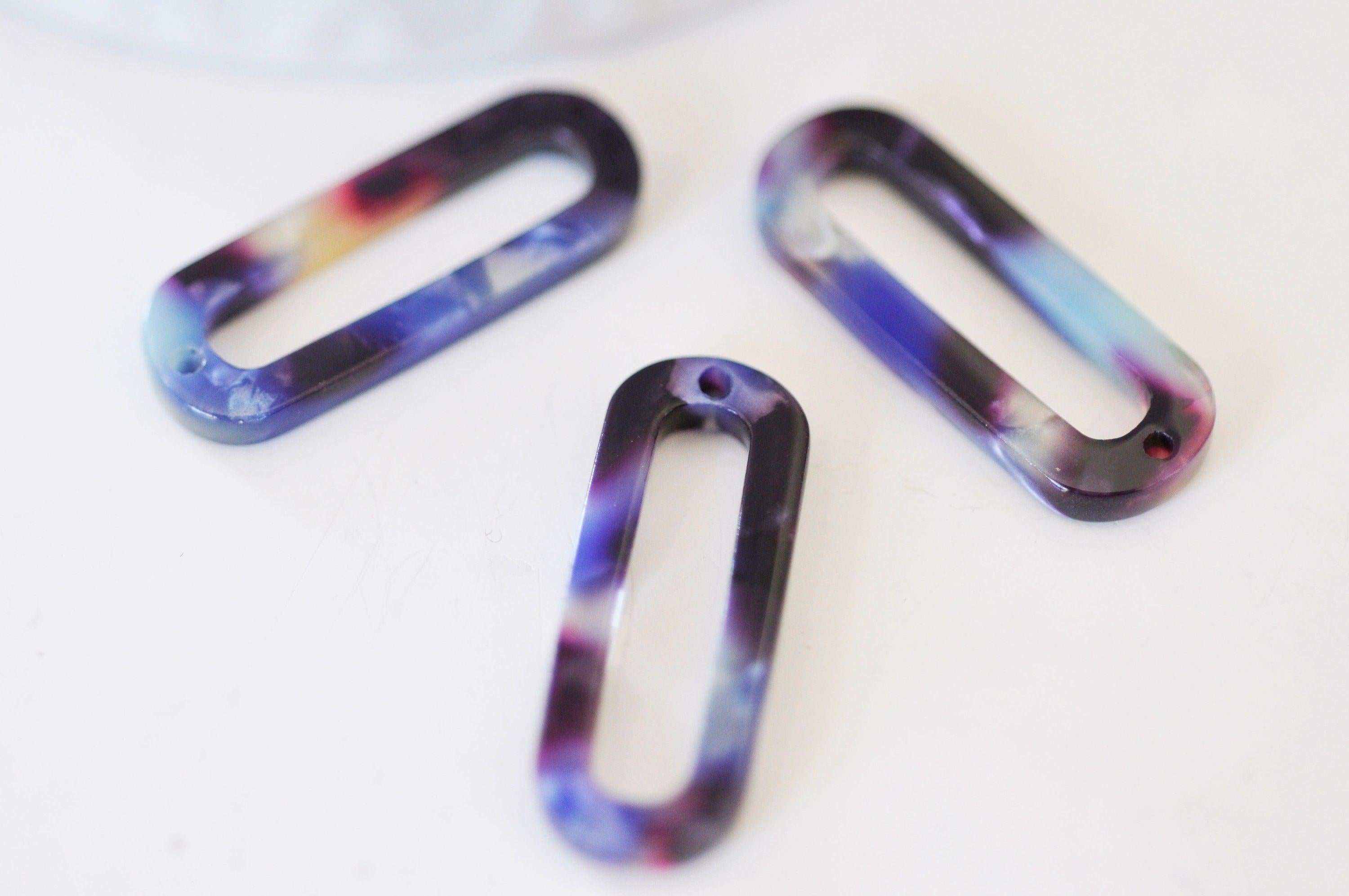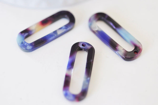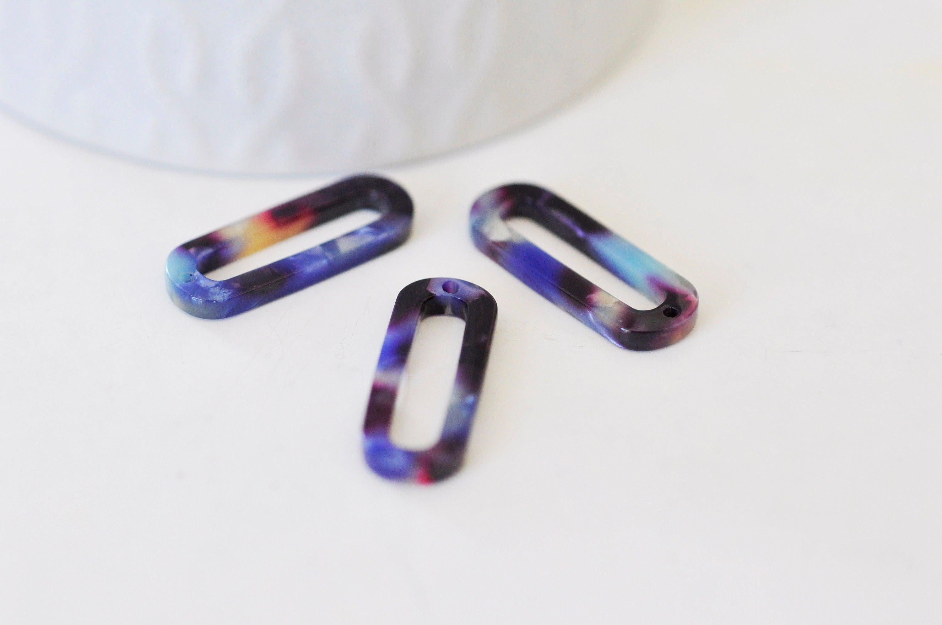 Colgante de carey azul de acetato ovalado, suministro de joyería, cuenta de acetato, creación de joyas, cuentas de plástico, conector de plástico, juego de 2, 30 mm