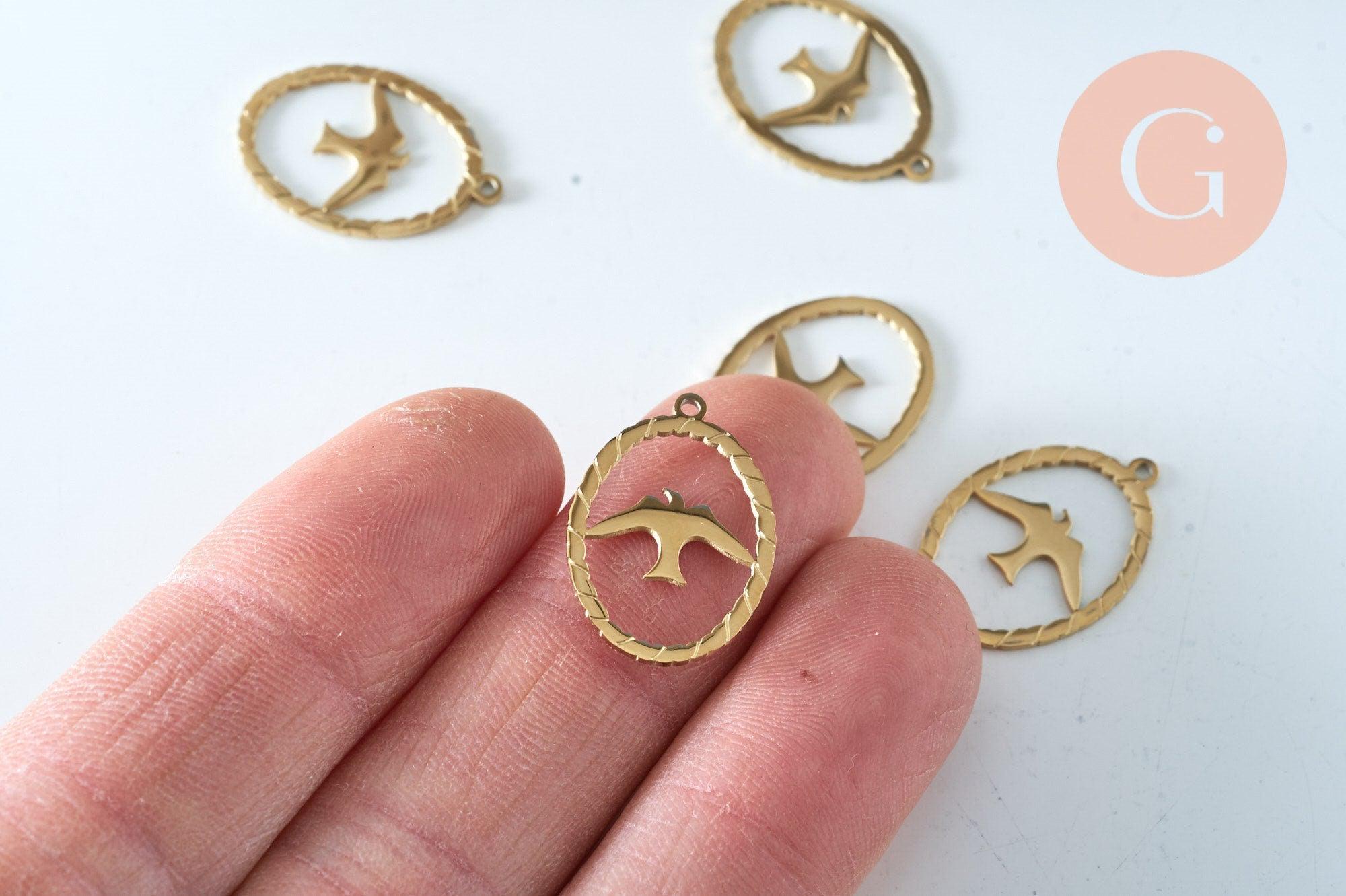 Colgante ovalado de pájaro de acero dorado 21,5 mm, dije de golondrina de acero inoxidable dorado, colgante sin níquel, creación de joyas, x1, G6019