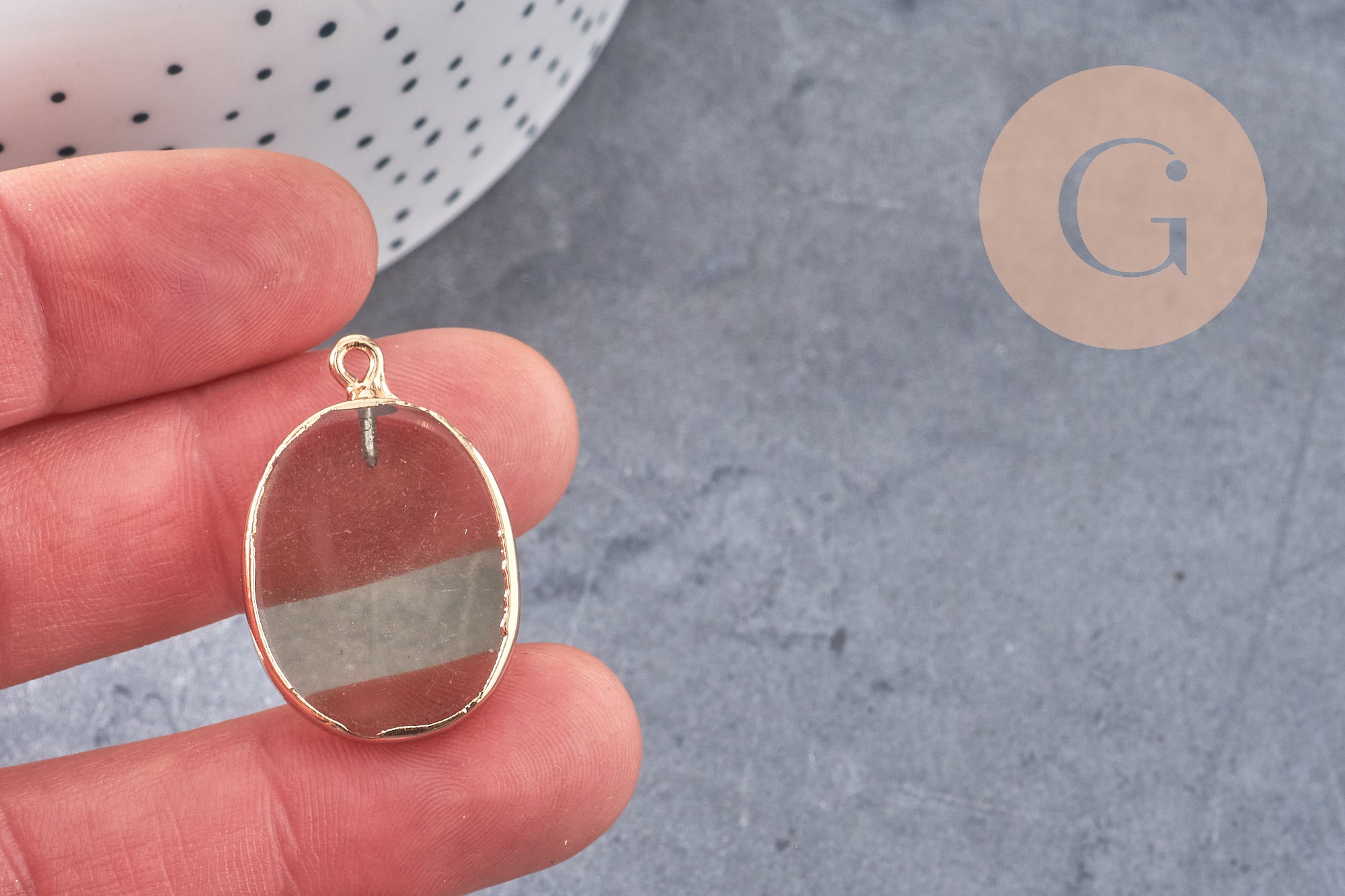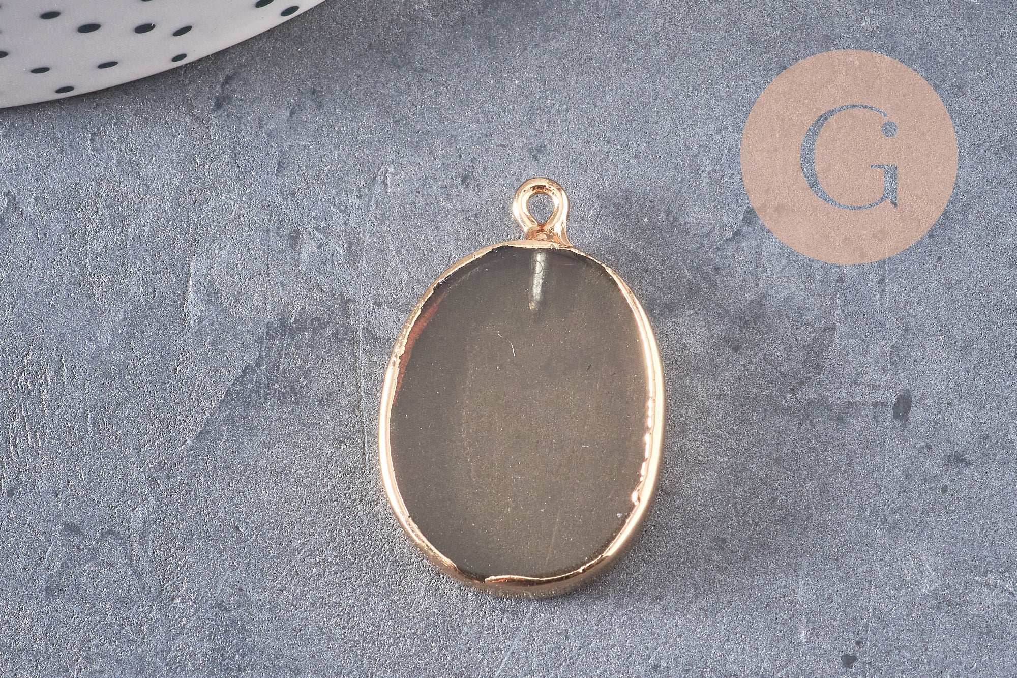 Colgante ovalado de cuarzo ahumado, colgante para joyería, colgante de piedra, piedra natural, colgante gris, cuarzo natural, 28mm