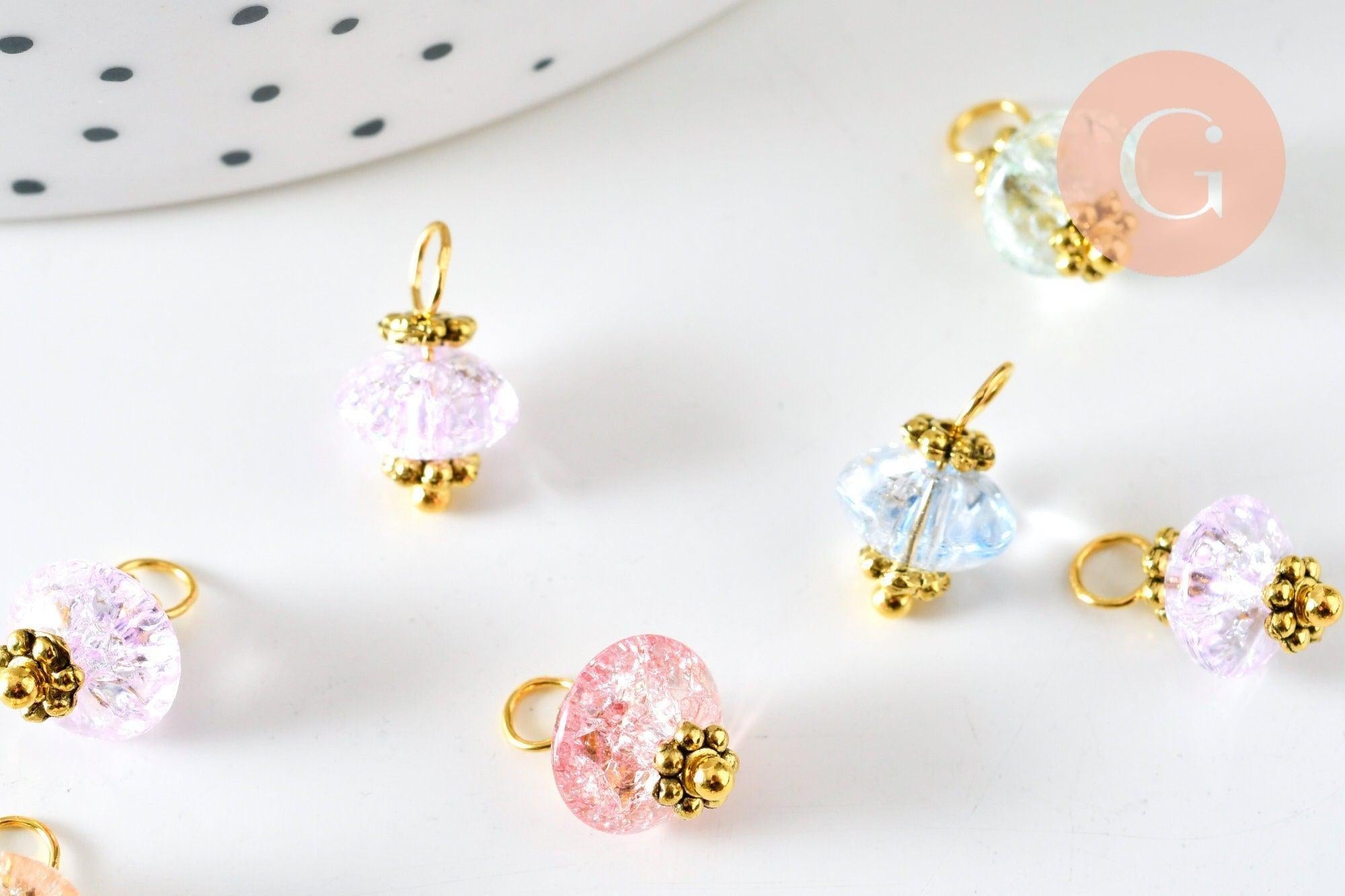 Déjese seducir por estos bonitos charms elaborados con perlas florales de cristal agrietadas en tonos pastel, sobre un soporte de latón dorado.