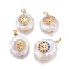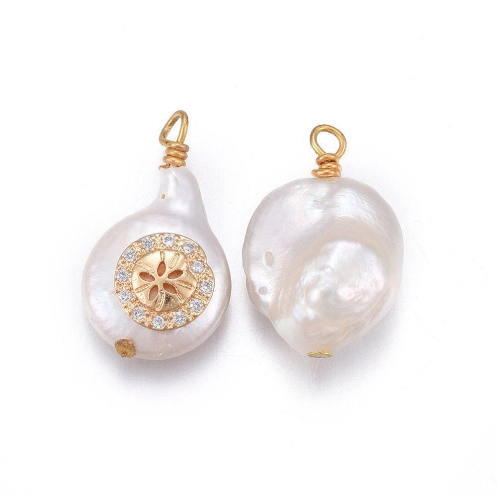 Colgante Keshi de perla natural con circonitas, amuleto de la suerte, perla de agua dulce, diseño de joyería, perla natural blanca, 17-27 mm, 1 unidad (G3248)