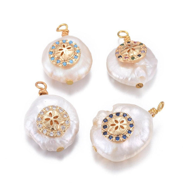 Colgante Keshi de perla natural con circonitas, amuleto de la suerte, perla de agua dulce, diseño de joyería, perla natural blanca, 17-27 mm, se vende por unidad