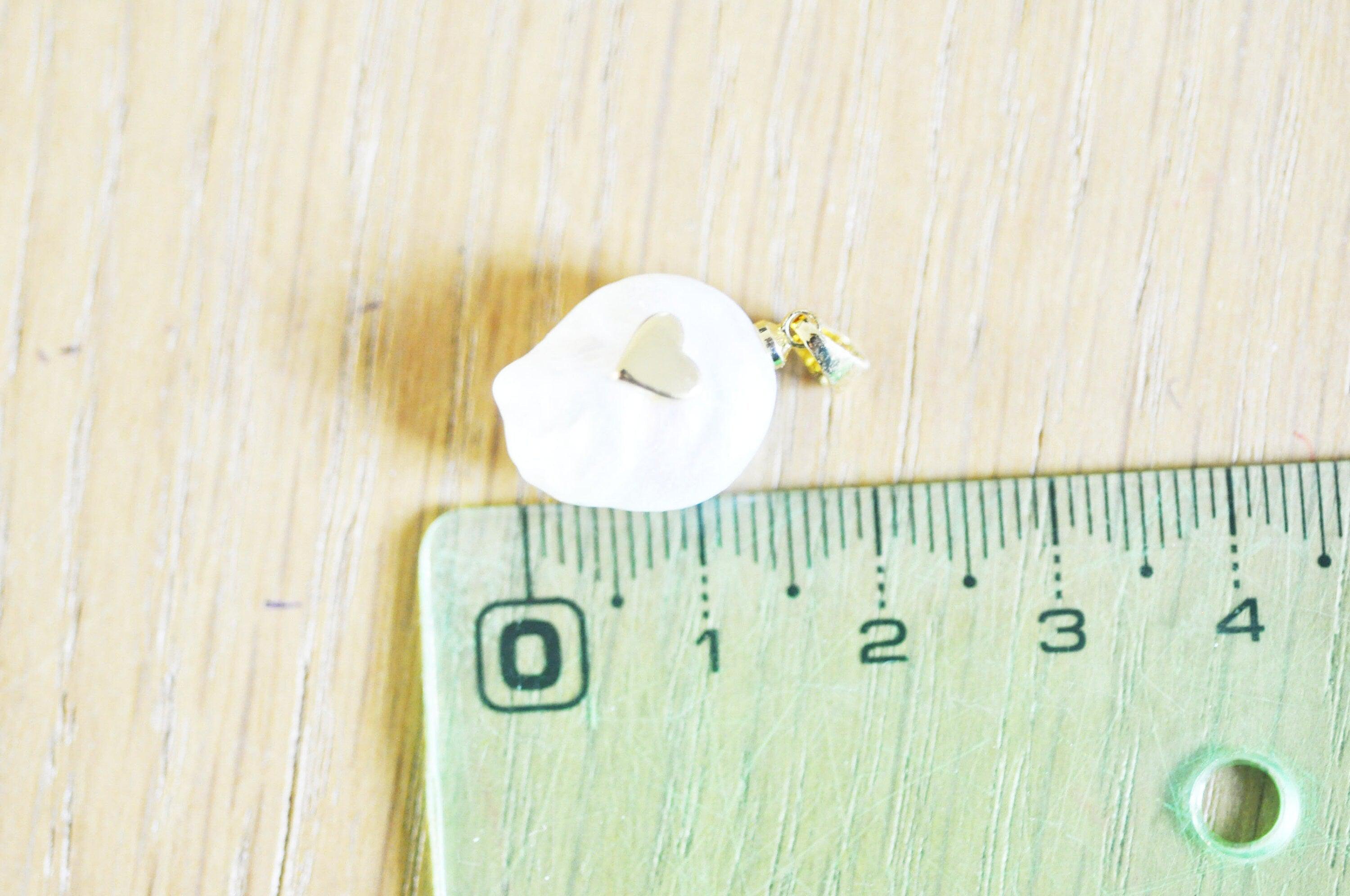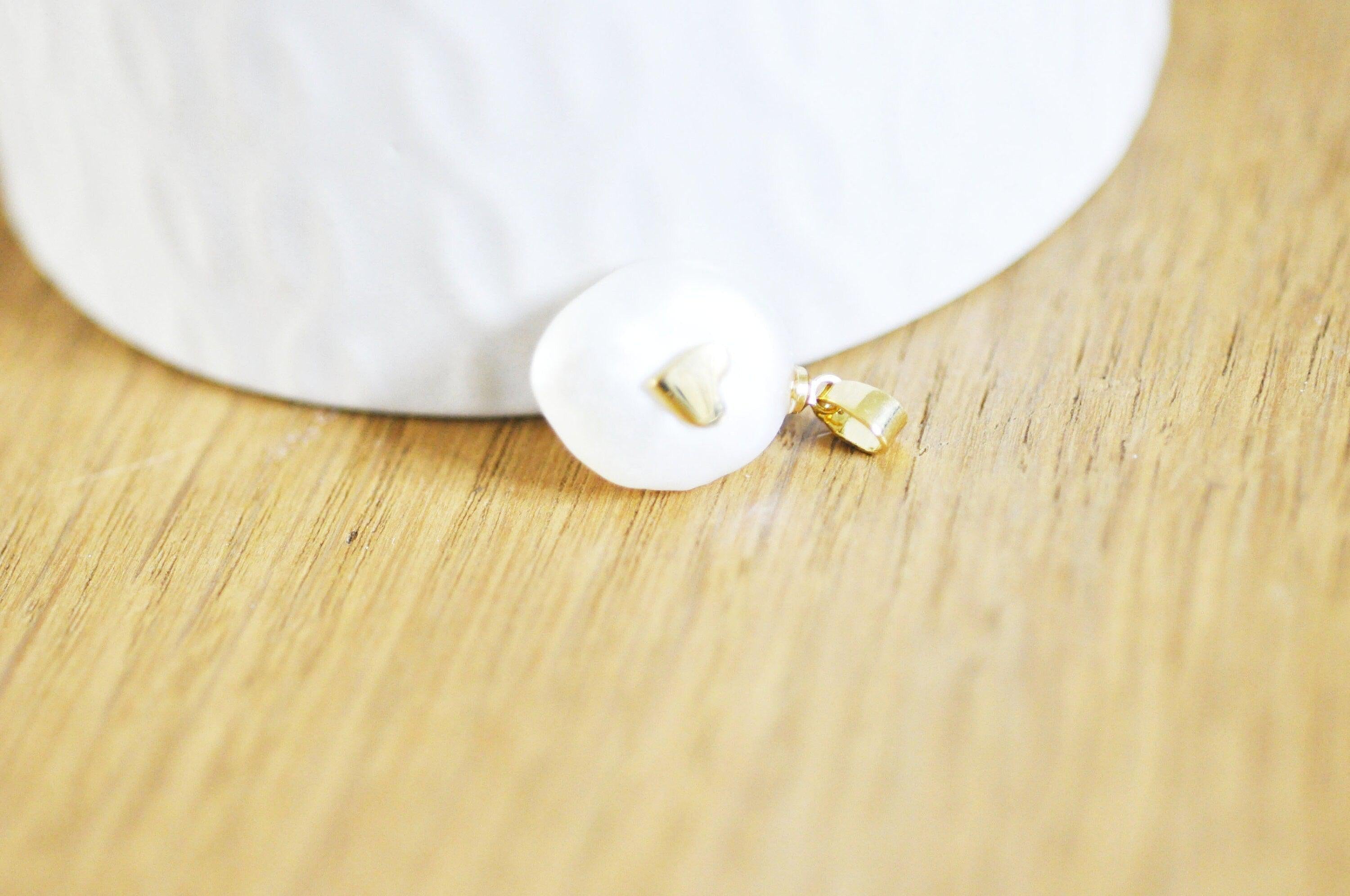 Cuenta Keshi natural y montura de latón chapado en oro, decorada con un pequeño corazón dorado.