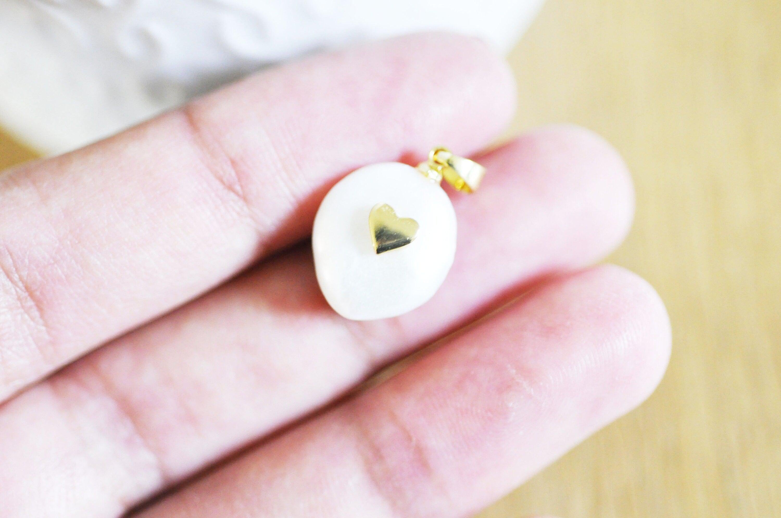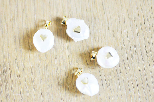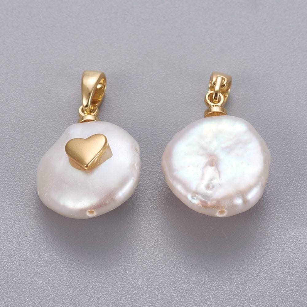 Colgante Keshi de perla natural en forma de corazón, dorado, amuleto de la suerte, perla de agua dulce, diseño de joyería, perla natural blanca, 17-27 mm