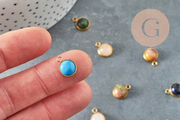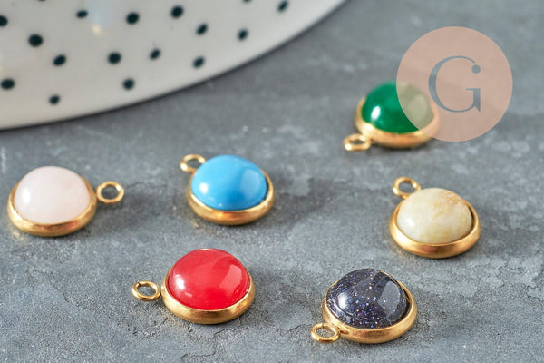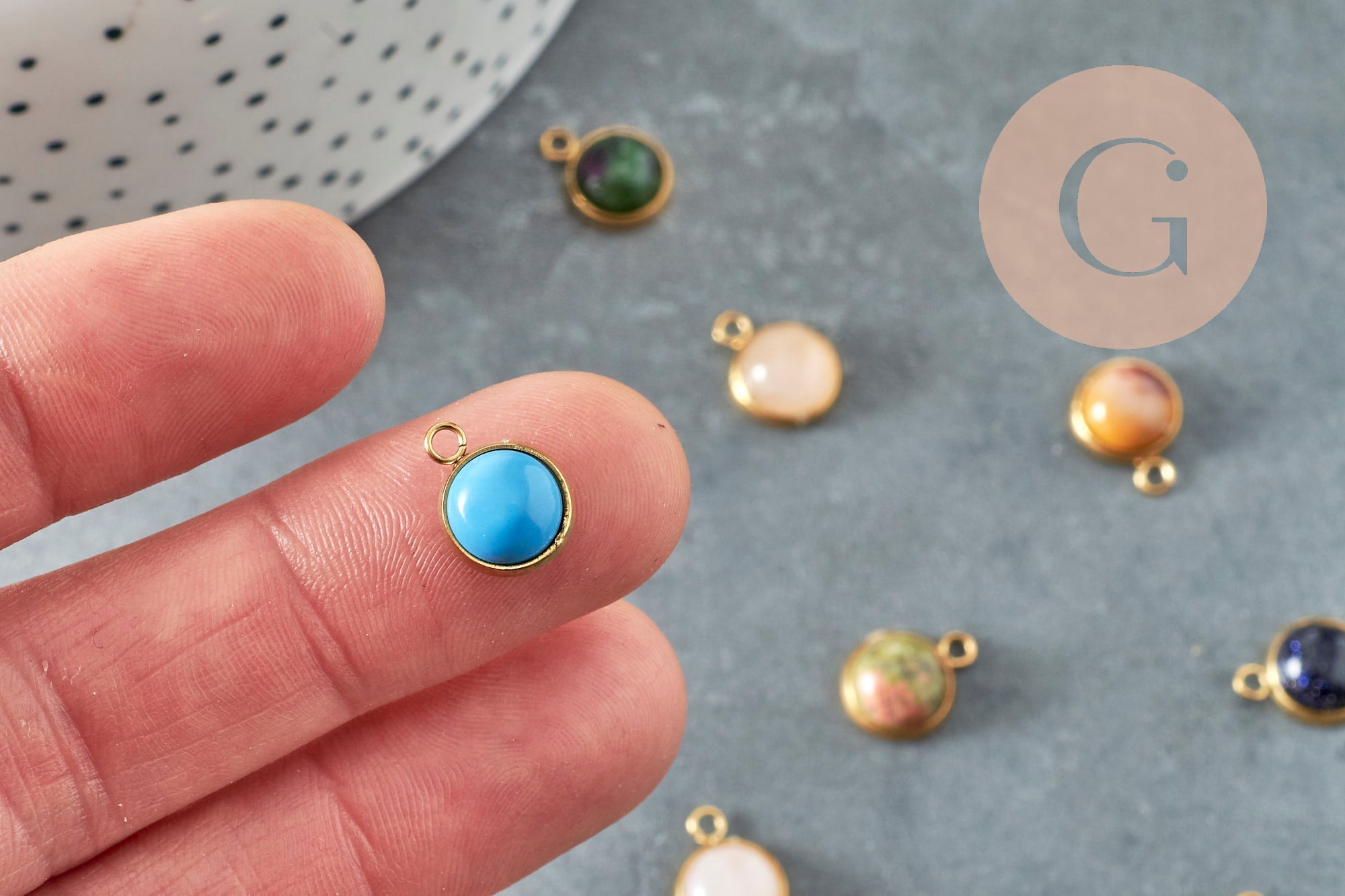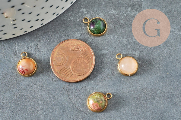 Pendentif pierre acier 304 inoxydable doré 19mm, x1 (G9487)